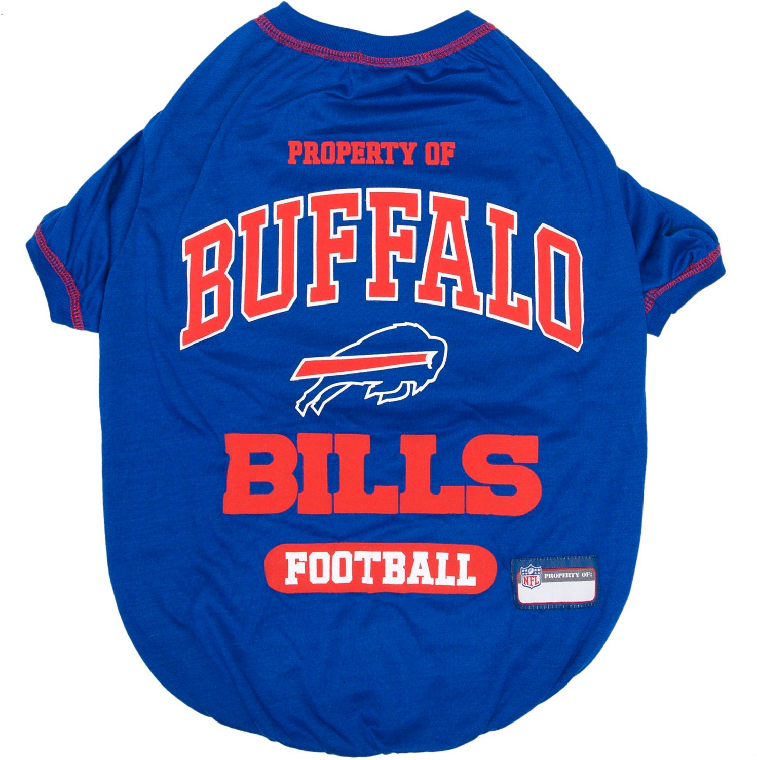 Your pet can play like the pros in the Pets First Buffalo Bills Pet T-shirt. This light cotton T-shirt is soft on animals' skin and features an easy fit elastic front panel and bottom band for added comfort. A screen-printed Buffalo Bills graphic puts your fandom on display.