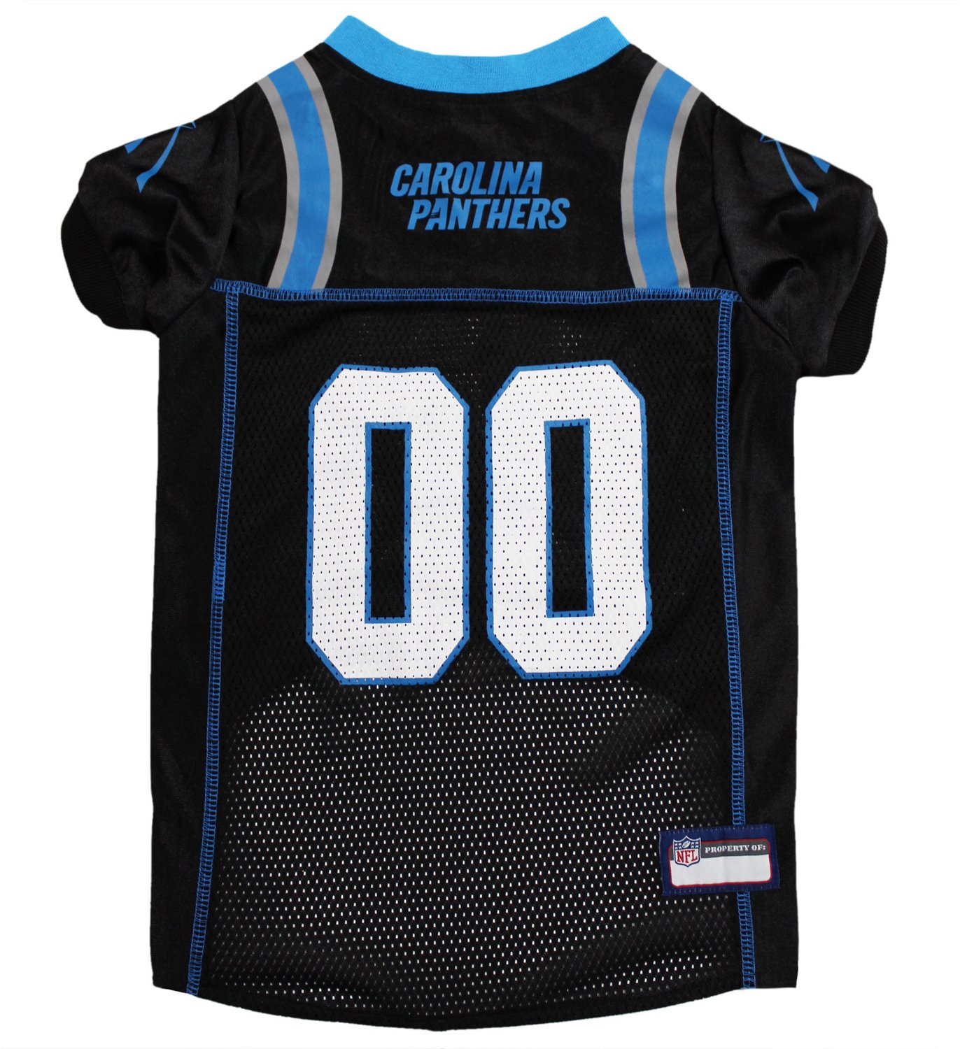 Let your pet enjoy the game with you wearing the Pets First Carolina Panthers Mesh Dog Jersey. The 100% satin polyester mesh construction provides a lightweight and breathable feel, and the graphic design allows your pup to stay just as loyal as you are to the Panthers.