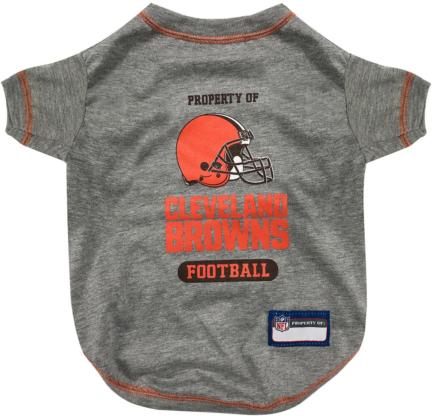 Your pet can play like the pros in the Pets First Cleveland Browns Pet T-shirt. This light cotton T-shirt is soft on animals' skin and features an easy fit elastic front panel and bottom band for added comfort. A screen-printed Cleveland Browns graphic puts your fandom on display.