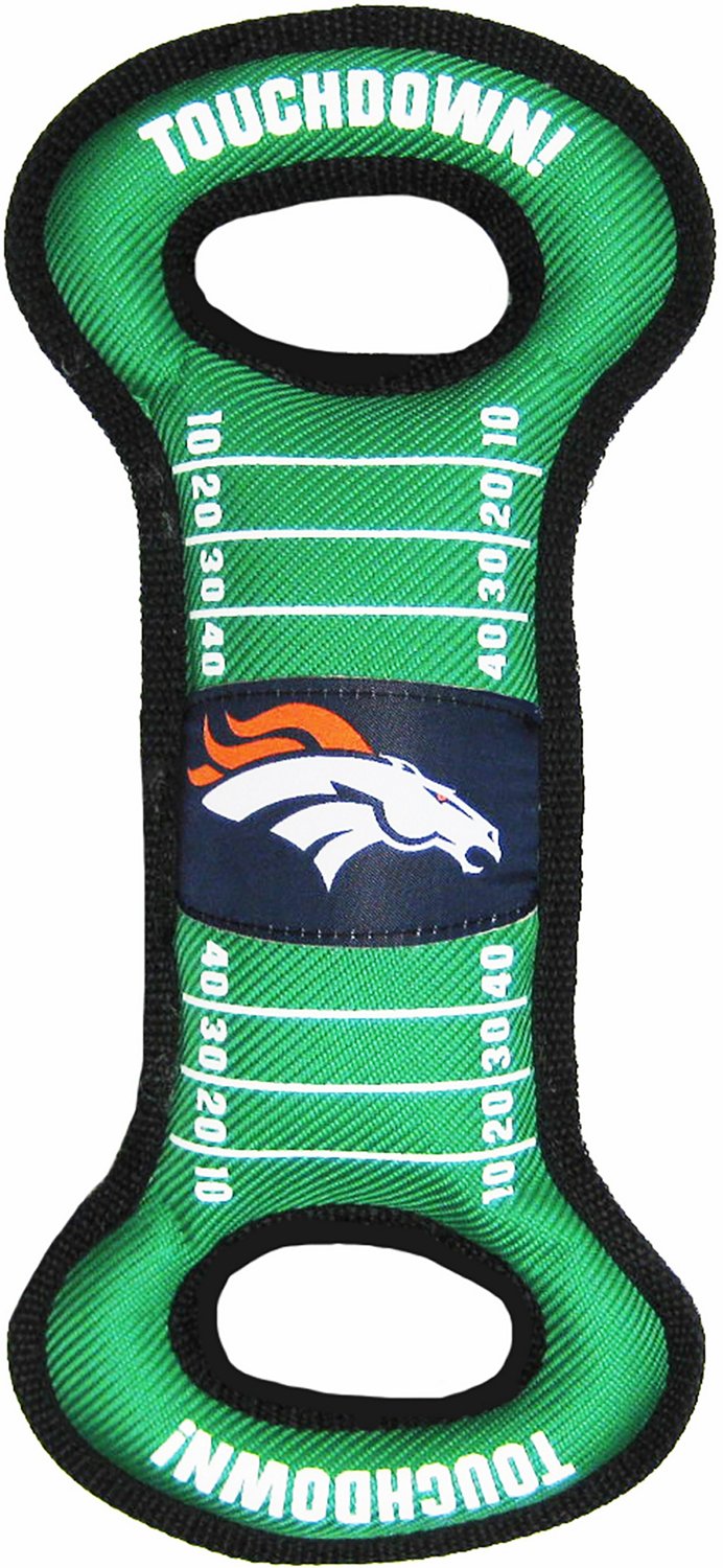 Take your best friend out for a fun day of play with the Pets First Denver Broncos Field Dog Toy. The polyfill material and nylon web binding affords durability, while the woven team logo shows off your Broncos pride.