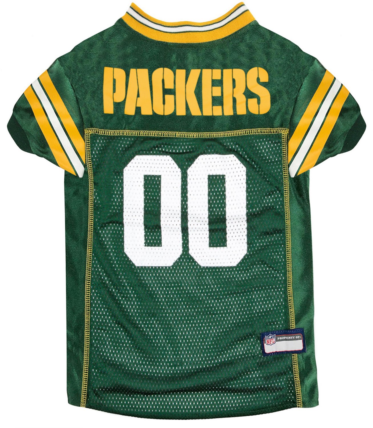 Let your pet enjoy the game with you wearing the Pets First Green Bay Packers Mesh Dog Jersey. The 100% satin polyester mesh construction provides a lightweight and breathable feel, and the graphic design allows your pup to stay just as loyal as you are to the Packers.