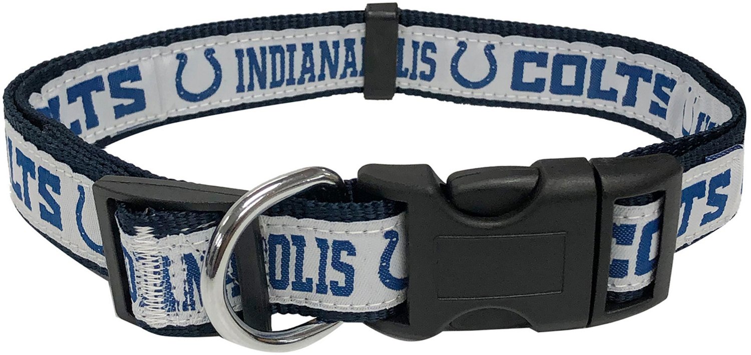 Show your pup's love for the Colts with the Pets First Indianapolis Colts Dog Collar. The adjustable buckle provides a comfortable fit, and the silver D ring offers easy attachment for dog tags and leashes. The Colts design shows team spirit, while the nylon construction provides long-lasting durability.