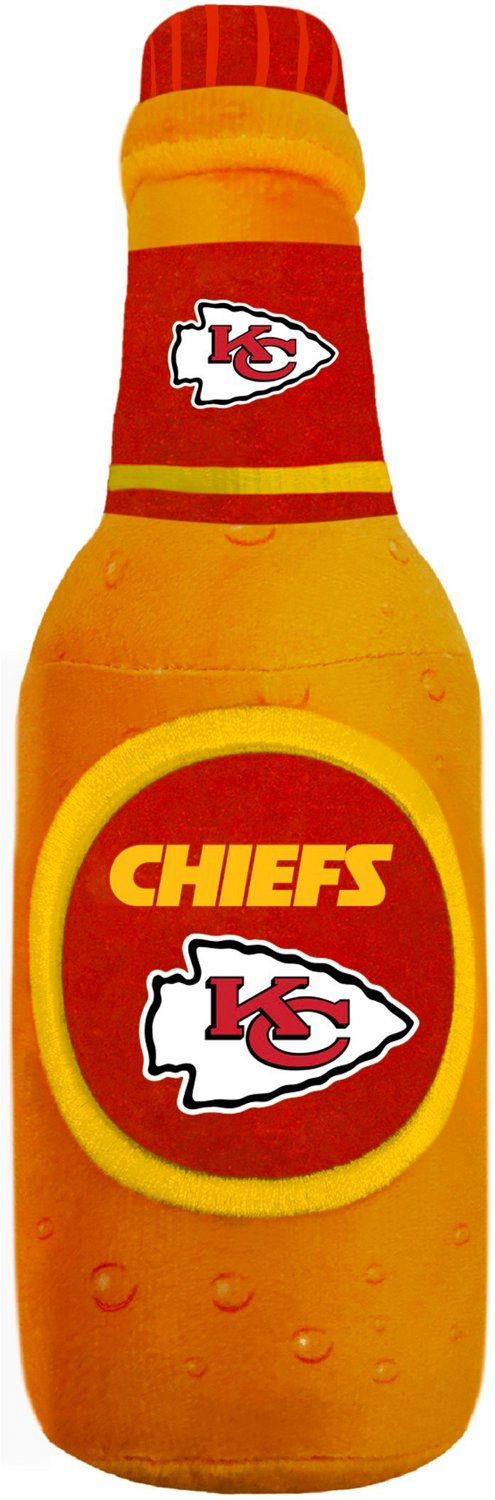 Ensure your dog enjoys the game with you using the Pets First Kansas City Chiefs Bottle Dog Toy. The bottle-shaped design displays an appearance of a cold game day beverage, and the team graphics showcase your pup's fandom. The 4 built-in squeakers deliver a sound when bit.