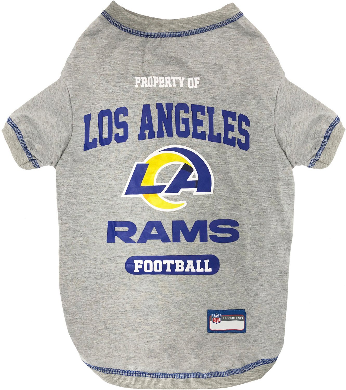 Your pet can play like the pros in the Pets First Los Angeles Rams Pet T-shirt. This light cotton T-shirt is soft on animals' skin and features an easy fit elastic front panel and bottom band for added comfort. A screen-printed Los Angeles Rams graphic puts your fandom on display.