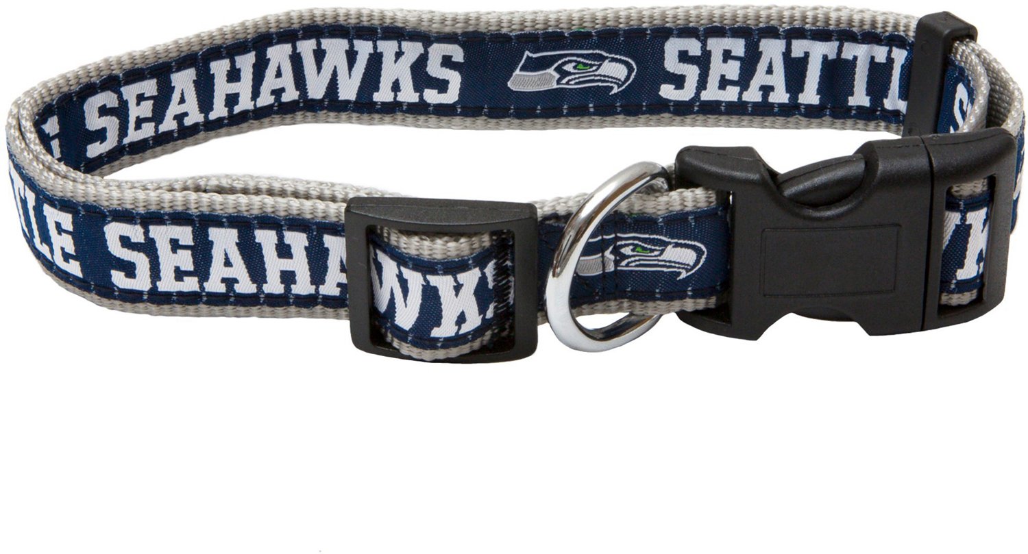 Show your pup's love for the Seahawks with the Pets First Seattle Seahawks Dog Collar. The adjustable buckle provides a comfortable fit, and the silver D ring offers easy attachment for dog tags and leashes. The Seahawks design shows team spirit, while the nylon construction provides long-lasting durability.