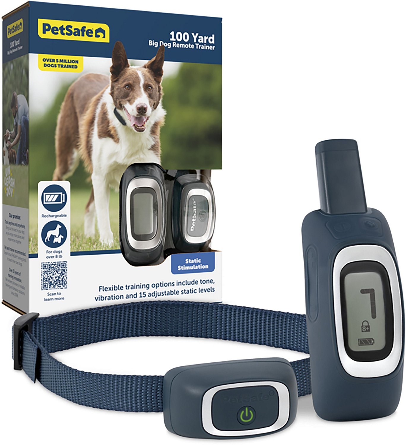 Help keep your dog safe with the PetSafe Remote Dog Trainer Collar 100yd. The ergonomic remote is comfortable and the intuitive controls work in a variety of conditions, and the waterproof construction weathers the elements to work in rain or shine.