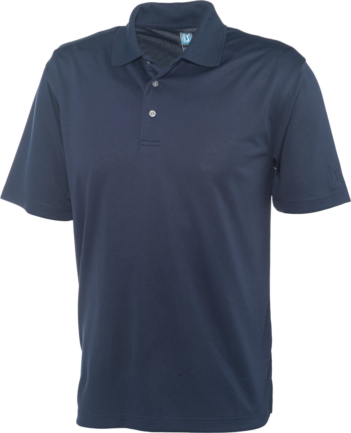 Designed with moisture absorption technology, the PGA TOUR Men's Airflux Solid Performance Polo Shirt helps you stay cool and dry so you can sink the big putt. This polo shirt is made of 100% polyester for comfortable wear and is mesh textured to offer breathability on the course. 3-button placket. Short sleeves.