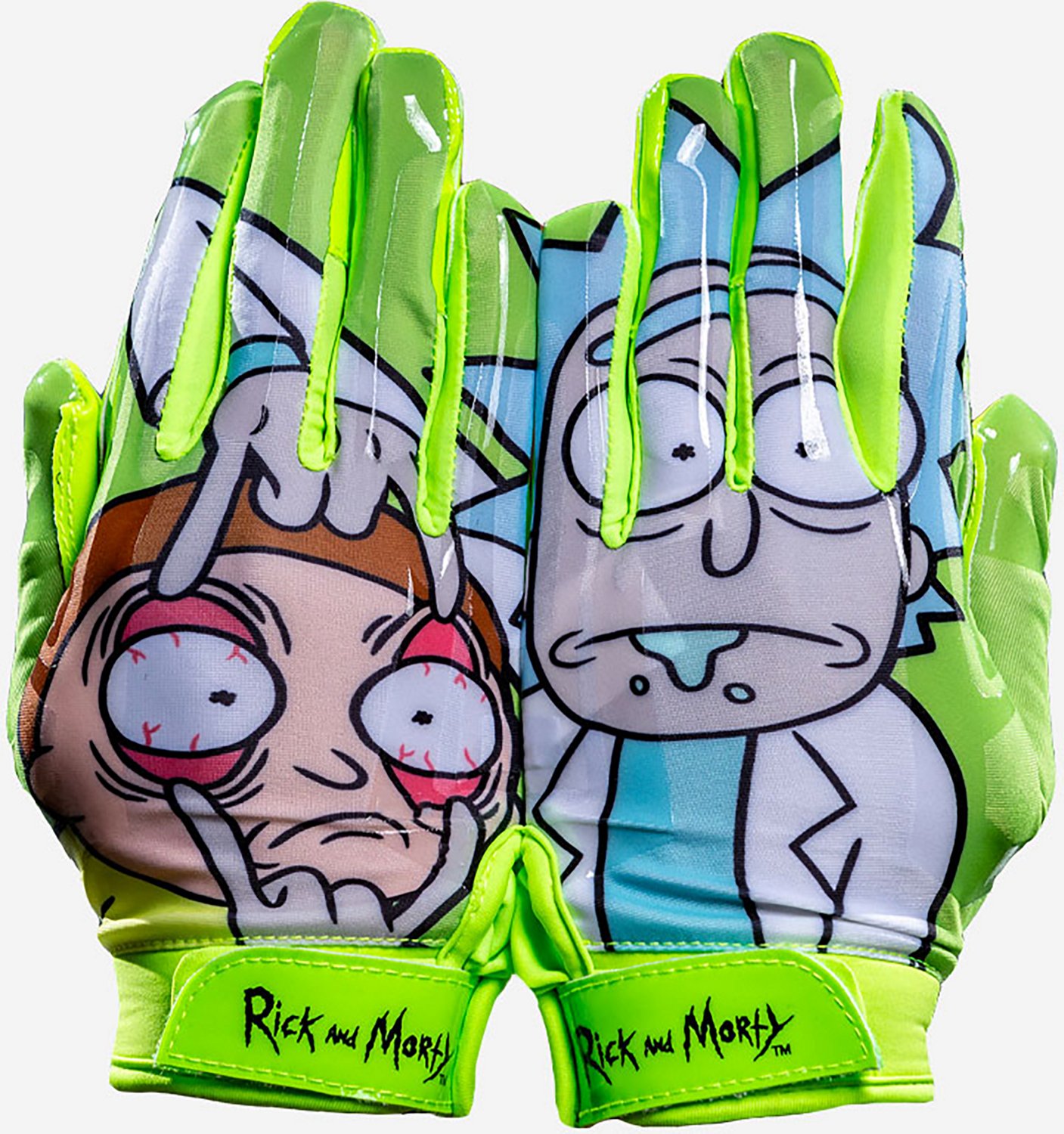 Gear up for the gridiron with the Phenom Elite Rick and Morty Football Gloves. The lightweight, breathable VaporDri material wicks sweat and dries quickly, while Vapor-Stick technology delivers a dual sticky grip for complete ball control.