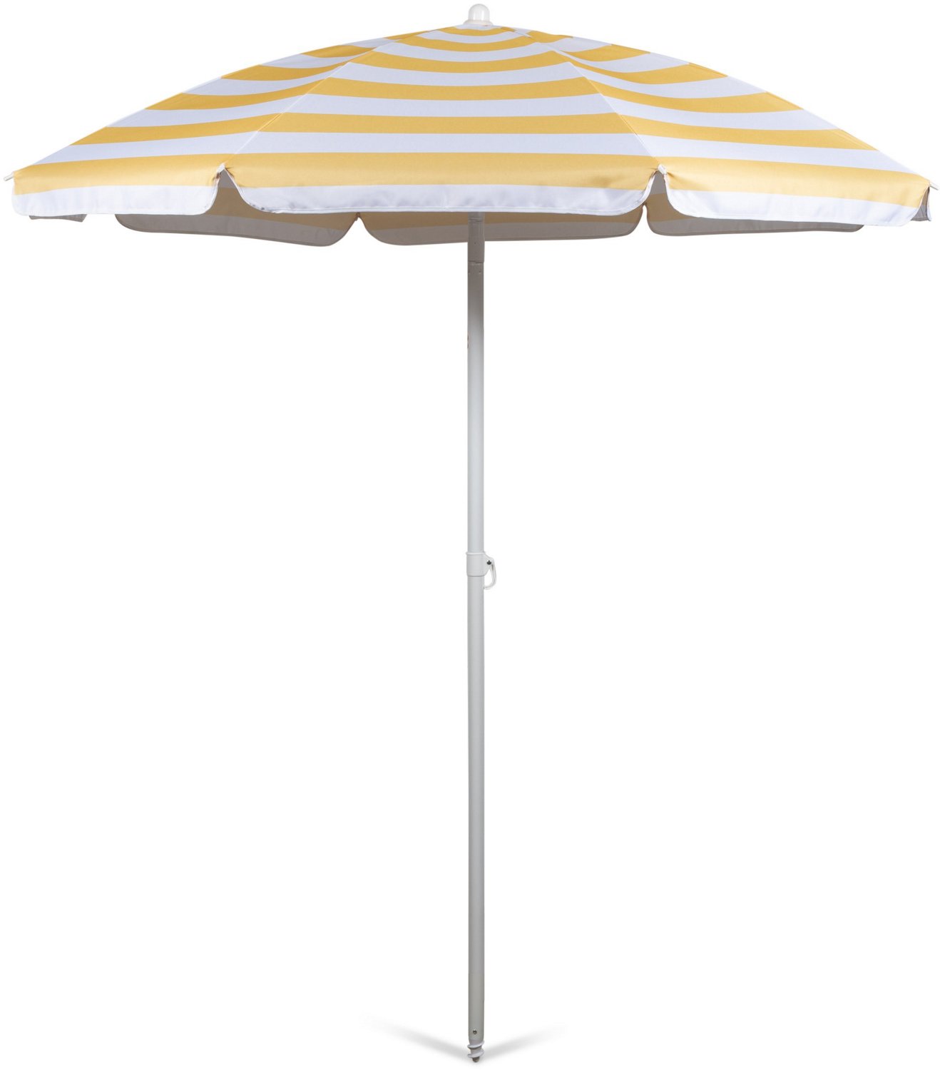 Stay shaded at the beach or pool with the Picnic Time 5.5' Athens Pattern Portable Beach Umbrella. The rugged steel frame tilts up to 155 degrees for custom coverage as the sun moves, while the pointed bottom end penetrates easily into grass or sand. A 5.5 foot canopy offers ample protection to keep you cool and UV-safe.