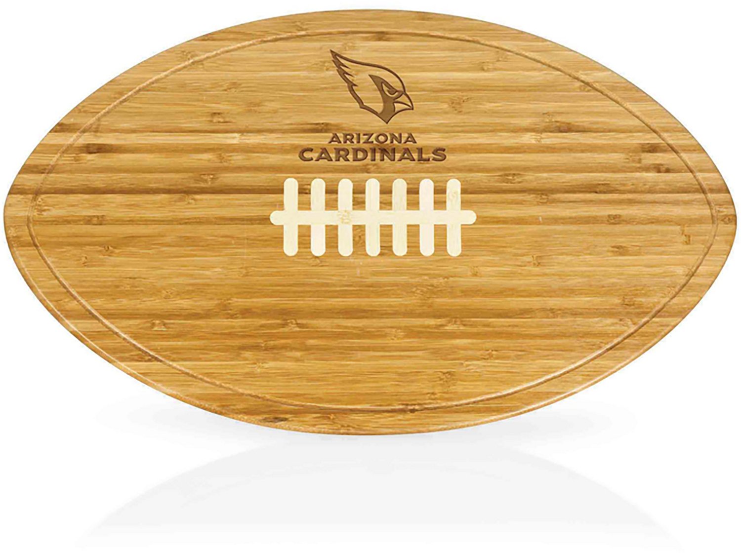 Serve game day snacks with the Picnic Time Arizona Cardinals Kickoff XL Football Cutting Board and Serving Tray. The bamboo construction affords durability, while the tapered sides offer a firm grip, The 184 square inch surface area provides plenty of prep space, and the team graphics show off your Cardinals pride.