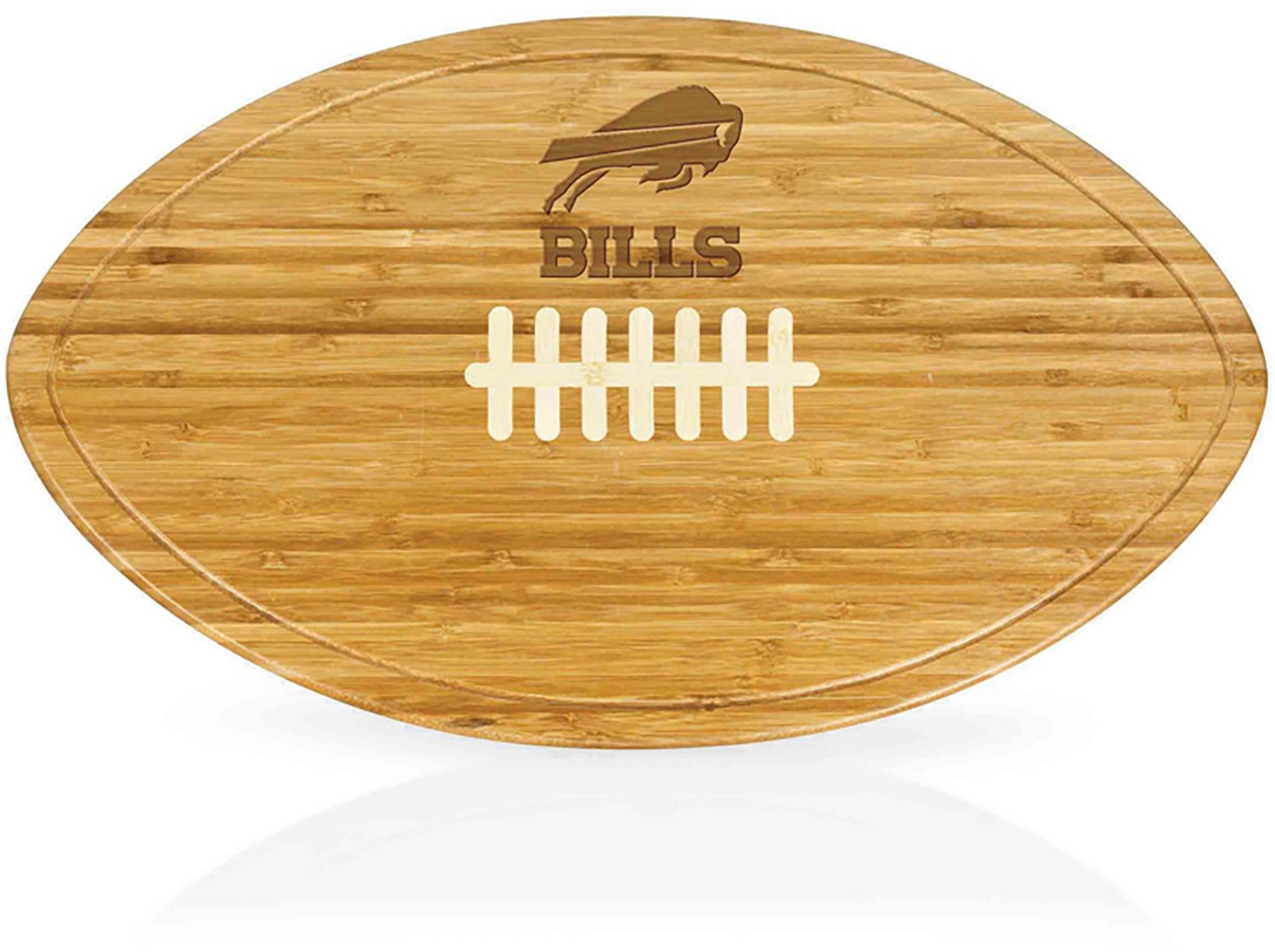 Serve game day snacks with the Picnic Time Buffalo Bills Kickoff XL Football Cutting Board and Serving Tray. The bamboo construction affords durability, while the tapered sides offer a firm grip, The 184 square inch surface area provides plenty of prep space, and the team graphics show off your Bills pride.