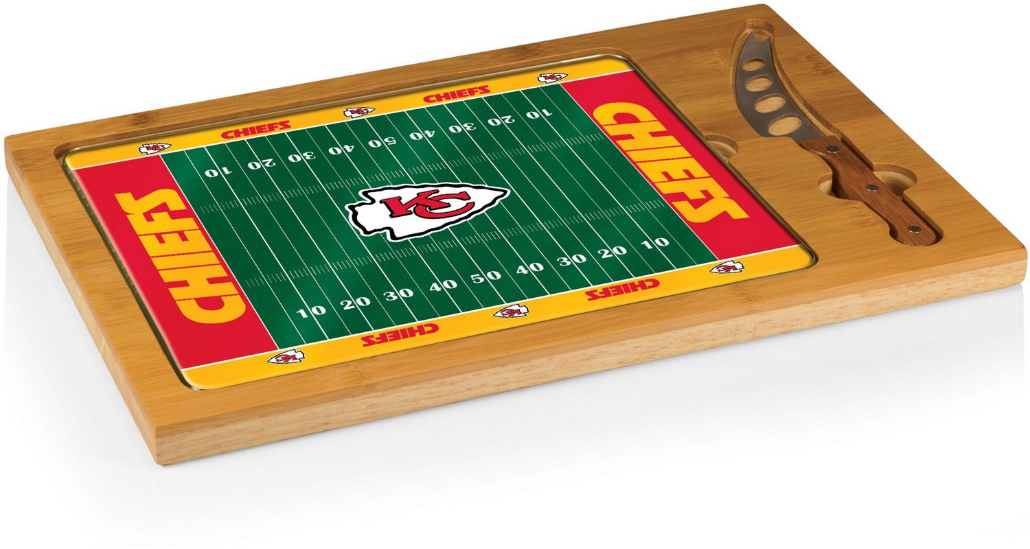 Host the next Chiefs watch party at your house and use the Picnic Time Kansas City Chiefs Icon Glass Top Cutting Board and Knife Set to entertain. The rubber wood base with a bamboo rim accent has an eye-catching aesthetic, and the tempered-glass lid can be used as a cutting board or a serving tray. The team design expresses your fandom.