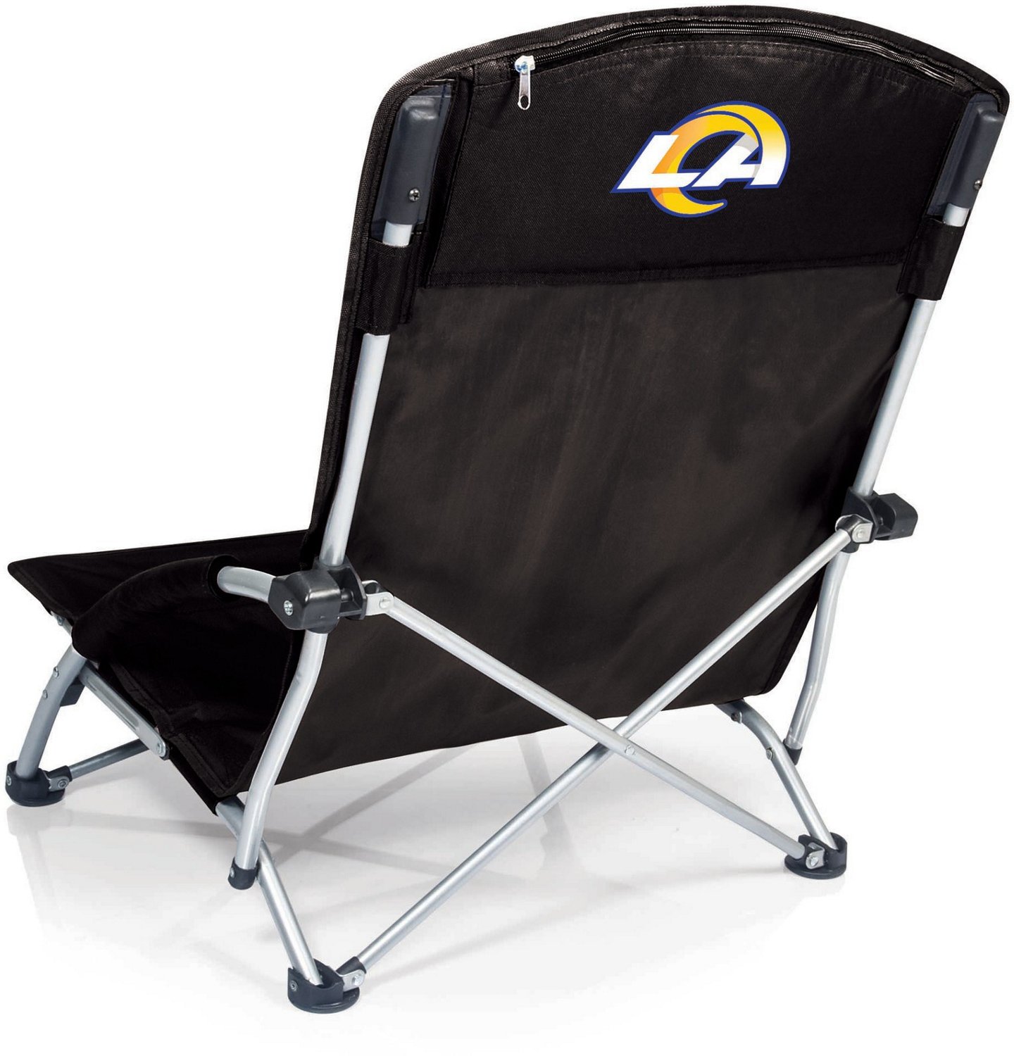 Relax at the beach or around the campfire with the Picnic Time Los Angeles Rams Tranquility Beach Chair. The powder-coat steel frame and polyester canvas fabric provide a lightweight feel and durability, while the zippered pocket keeps your personal items handy and secure. The inward-folding design and included carry bag make transport and storage a breeze.