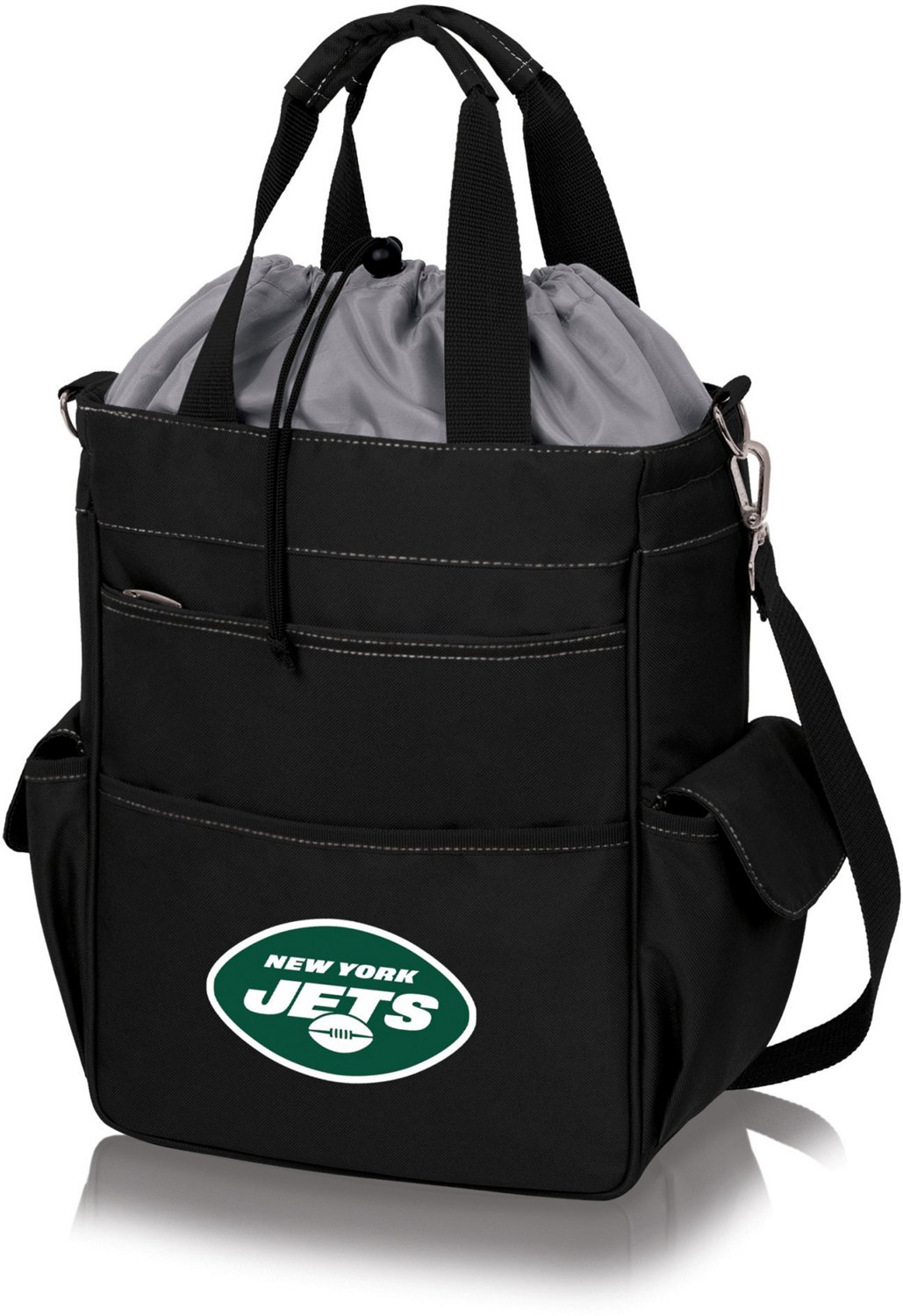 Bring along your favorite snacks and beverages on game day with the Picnic Time New York Jets Activo Cooler Tote Bag. The expandable drawstring top accommodates large items, while the 5 pockets provide additional storage space. The water-resistant interior liner helps keep food and drinks at the desired temperature, and the adjustable shoulder strap makes transport a breeze.