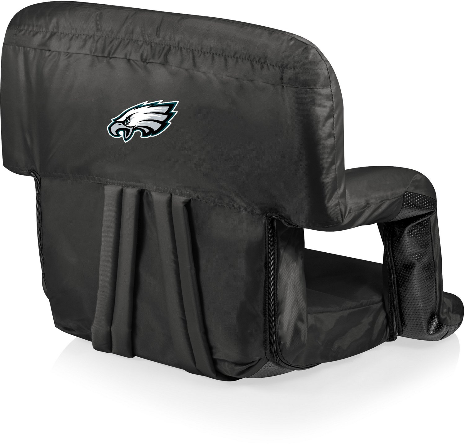 Show off your pride in the Eagles on gameday or any day with the Picnic Time Philadelphia Eagles Ventura Portable Reclining Stadium Seat. The stadium seat offers 6 backrest positions, a foam-cushioned wide seat and backrest and armrests to provide ideal comfort while rooting for your team. Plus, at the end of the game, you can fold the seat flat and carry it with the adjustable backpack straps.