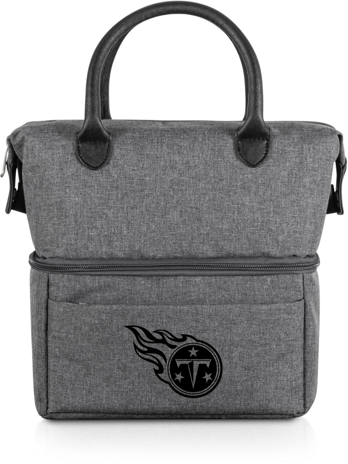 Even when you are at work, you can let others know you support the Titans with your lunch packed in the Picnic Time Tennessee Titans Urban Two-Tier Lunch Bag Cooler. The insulated interior makes sure your hot or cold foods maintain their ideal temperatures, and the team logo highlights your fandom. A compartment on the top and a zippered pocket on the front let you keep your dry foods away from condensation, and the leatherette handles make it easy to grab your lunch and go with ease.