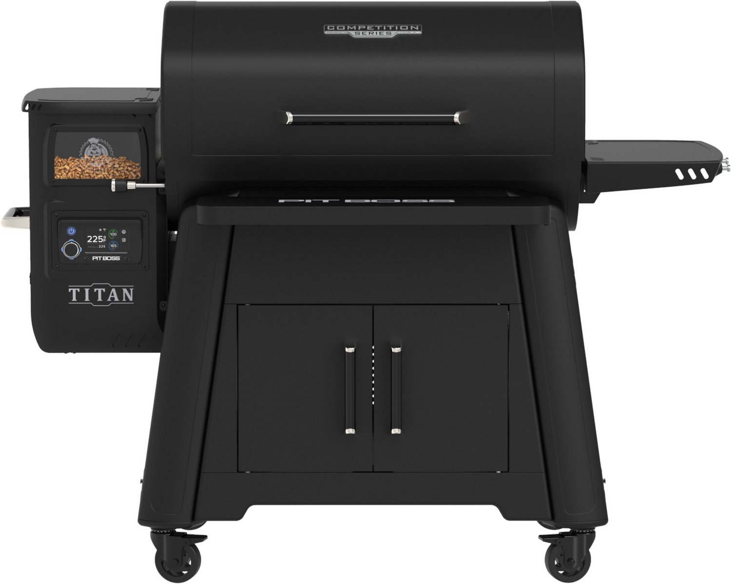 Feed the whole crowd with the Pit Boss Titan Wood Pellet Grill. Its 3 adjustable racks provide over 1600 square inches of cooking space with customizable heights. The 40-pound hopper features a divider for easy flavor mixing, and the pellet cleanout feature lets you swap wood types at any time.