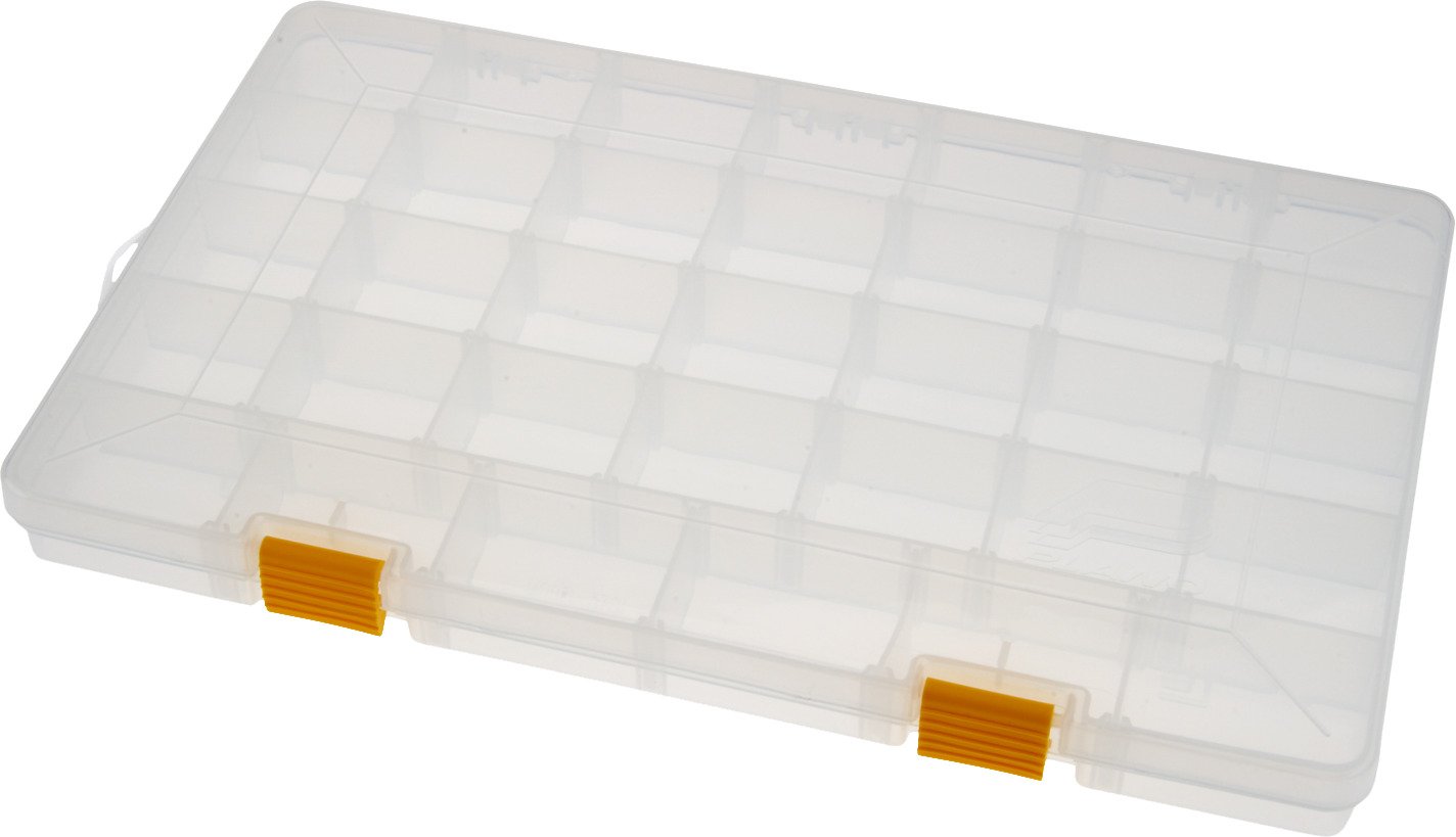 Organize your baits and lures with the Plano® ProLatch™ Stowaway Tackle Box. This clear tackle box has adjustable dividers that create 5 - 34 compartments.