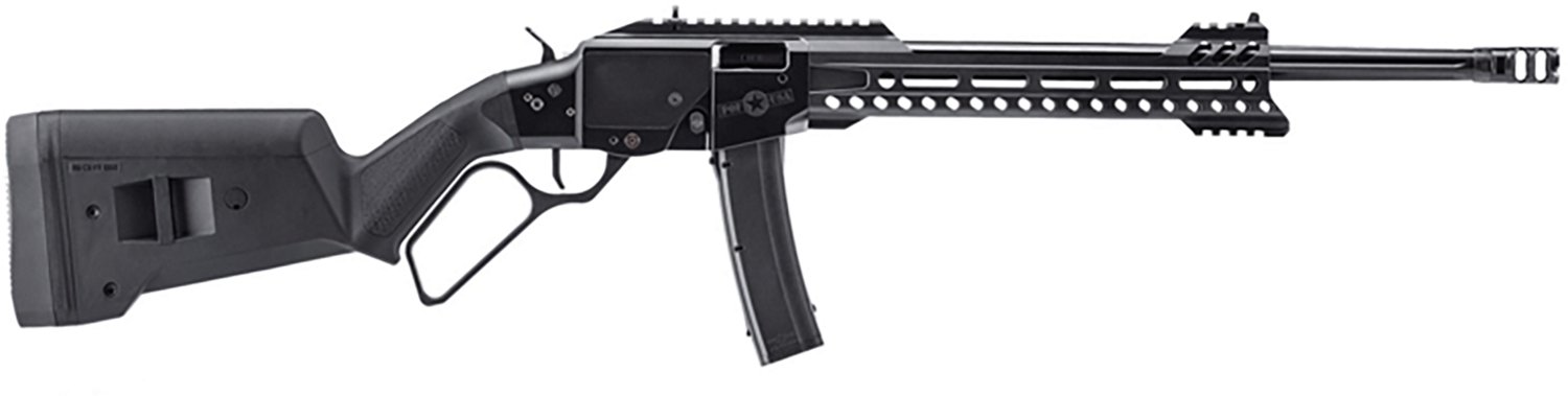 Head into the field with the POF-USA Tombstone 9mm Lever Action Rifle. The 16.5-inch barrel has a black anodized finish, and the tactical stock features a black finish.