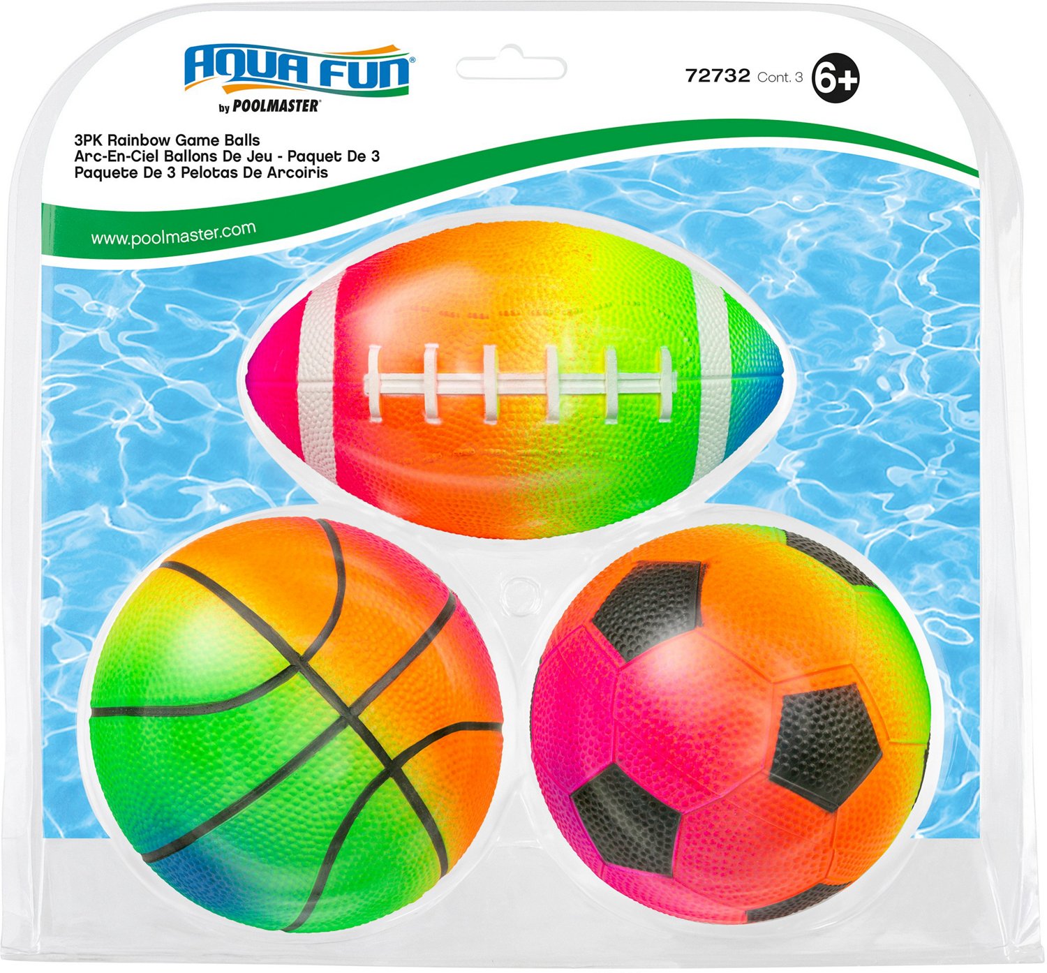 Take your favorite games into the water with the Poolmaster 3-Piece Sports Balls Set. The pack comes with an inflated basketball, football and soccer ball to toss around in the backyard, pool or even the bath. Each ball is made from textured PVC to give you a great throwing grip.