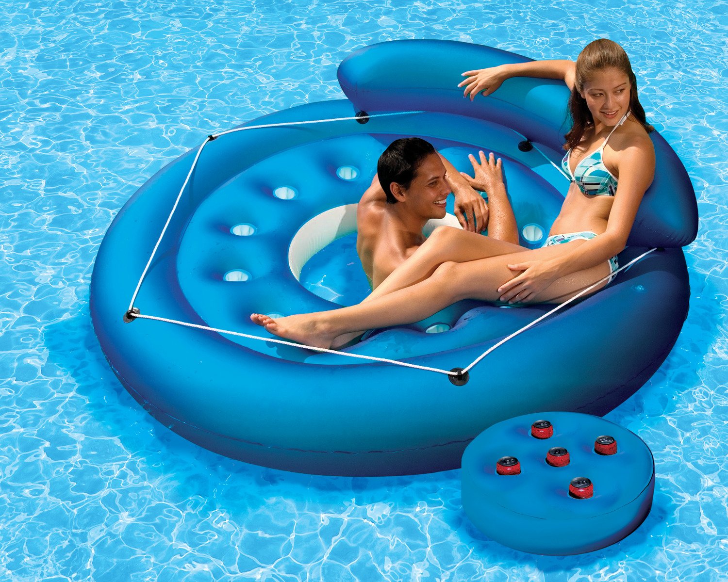 Kick back and catch some rays in the pool with the Poolmaster® French Pocket Convertible Island. Sprawl out on the 72" float, or pop out the center and store your favorite beverages in the integrated cup holders for a refreshing drinks right there on the water. A classic French pocket design with a removable backrest offers ample support for some peaceful R&R.