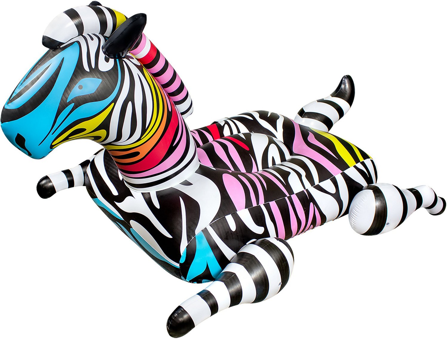 Get ready for some fun in the sun with the Poolmaster Oversized Zany Zebra Jumbo Pool Float. The wide flat body provides stability out on the water, while the 2-step valve allows for easy inflation/deflation.
