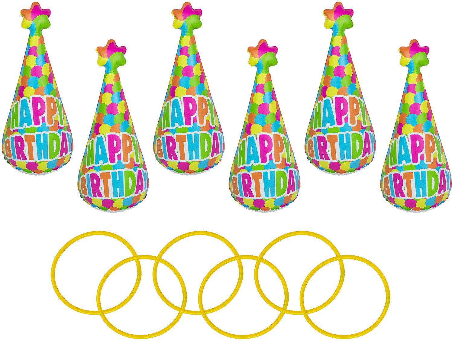 Looking for a fun, family-friendly party game? Choose the Poolmaster Party Hats Ring Toss Game. Guests will love competing against each other to see who can throw the most rings on the party hats. The hats have built-in water bladders to keep them upright in the pool or on land.