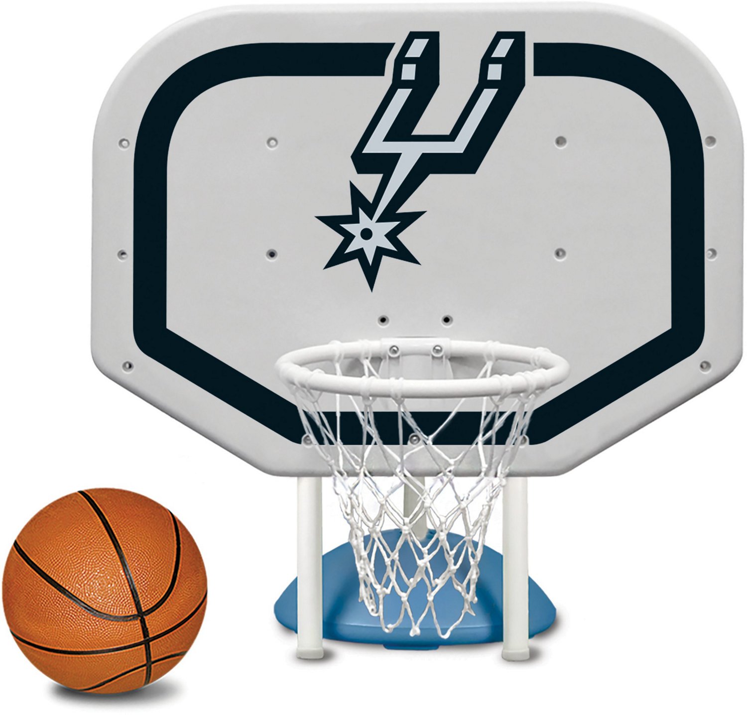 Shoot a few hoops in the pool with the Poolmaster® San Antonio Spurs Pro Rebounder Style Poolside Basketball Game, which features an all-weather backboard, a Polyform game base and Spurs graphics. Includes an 8.5" game ball and an inflating needle. Shop for this and other NBA accessories at Academy.com.