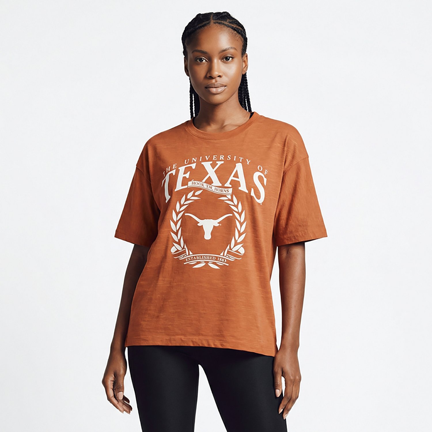 Cheer on your favorite team while wearing the Pressbox Women's Texas Wendy Motley Crew T-shirt. The 100% cotton construction helps keep you comfortable throughout the day, while the screen-printed team graphic makes it clear you're a true fan.