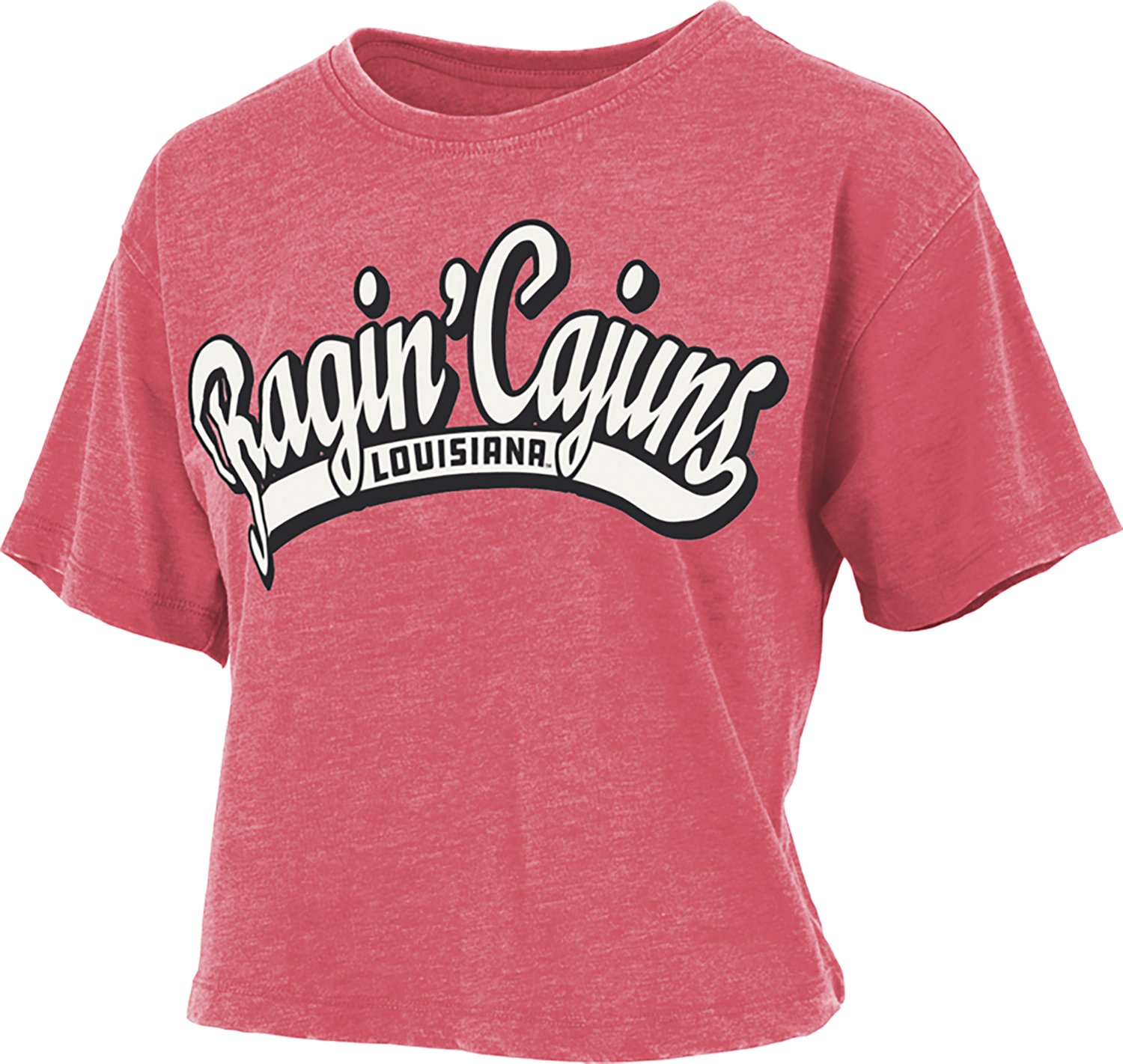 Pressbox Women's University of Louisiana at Lafayette Mikaela Vintage Crop Graphic T-shirt