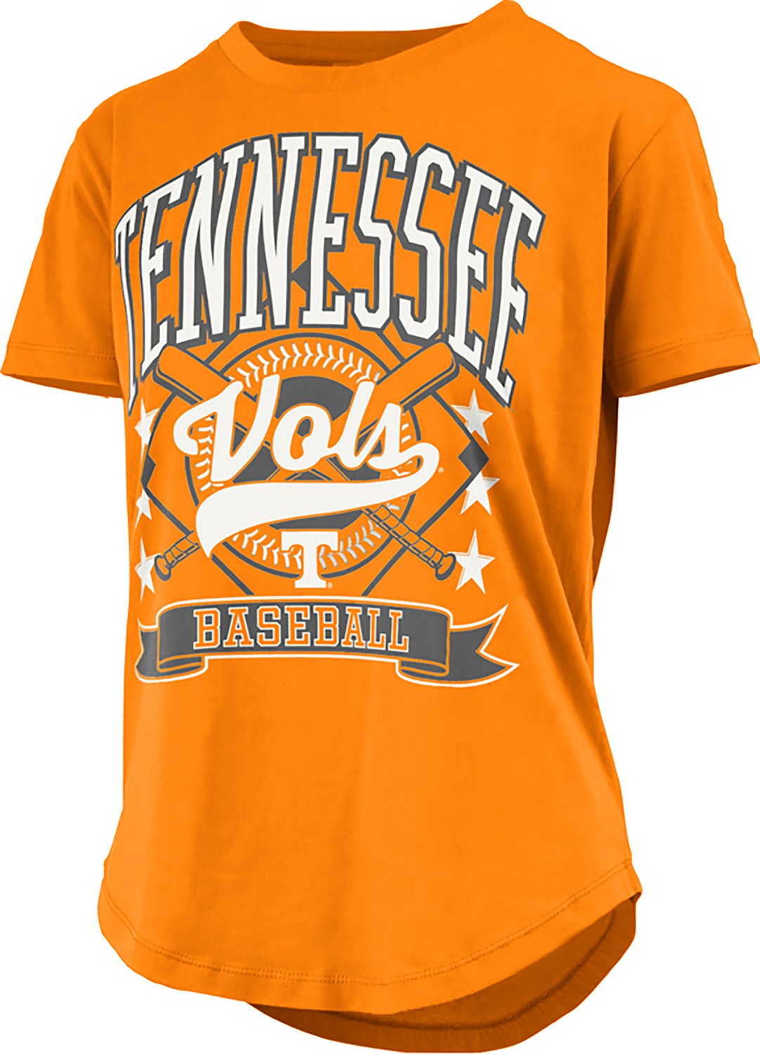 You can celebrate alongside other UT fans when you put on the Pressbox Women's University of Tennessee Uecker Baseball Irvine Top during the next game. The shirt is made of 100% cotton and features short sleeves and a crew neck for a casual style, and its screen-printed graphics help fans show love for the Volunteers.