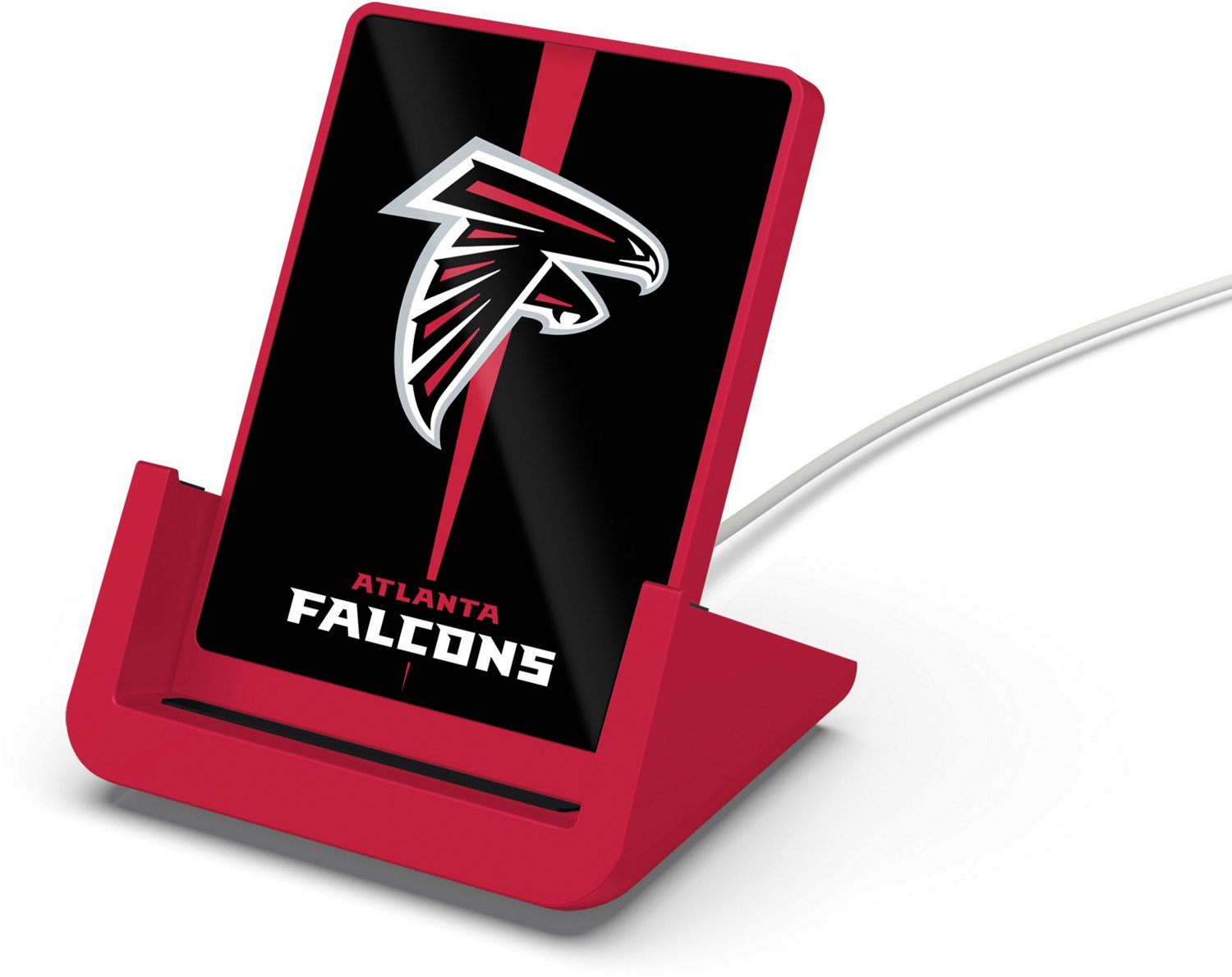 Charge your phone while checking your messages or surfing the Internet with the Prime Brands Group Atlanta Falcons Wireless Charging Stand. This stand is compatible with all Qi enabled devices, transmitting power without wires for convenient use. An Atlanta Falcons graphic shows your support this season.