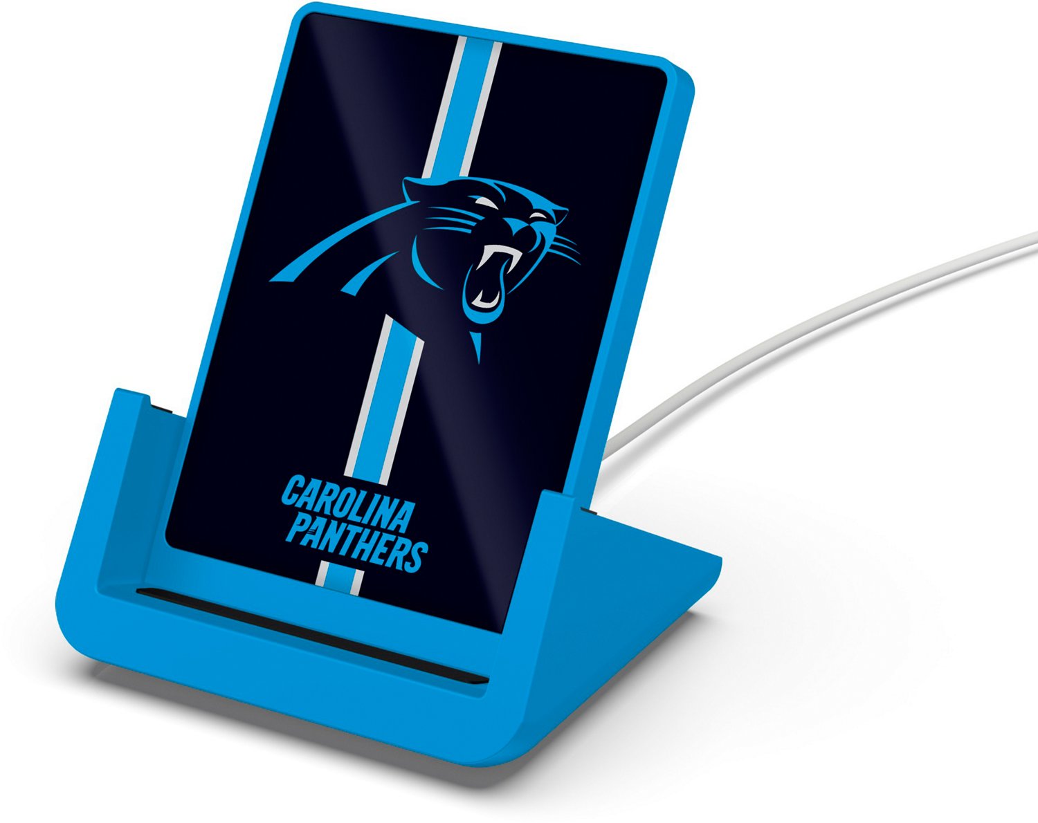 Charge your phone while checking your messages or surfing the Internet with the Prime Brands Group Carolina Panthers Wireless Charging Stand. This stand is compatible with all Qi enabled devices, transmitting power without wires for convenient use. A Carolina Panthers graphic shows your support this season.