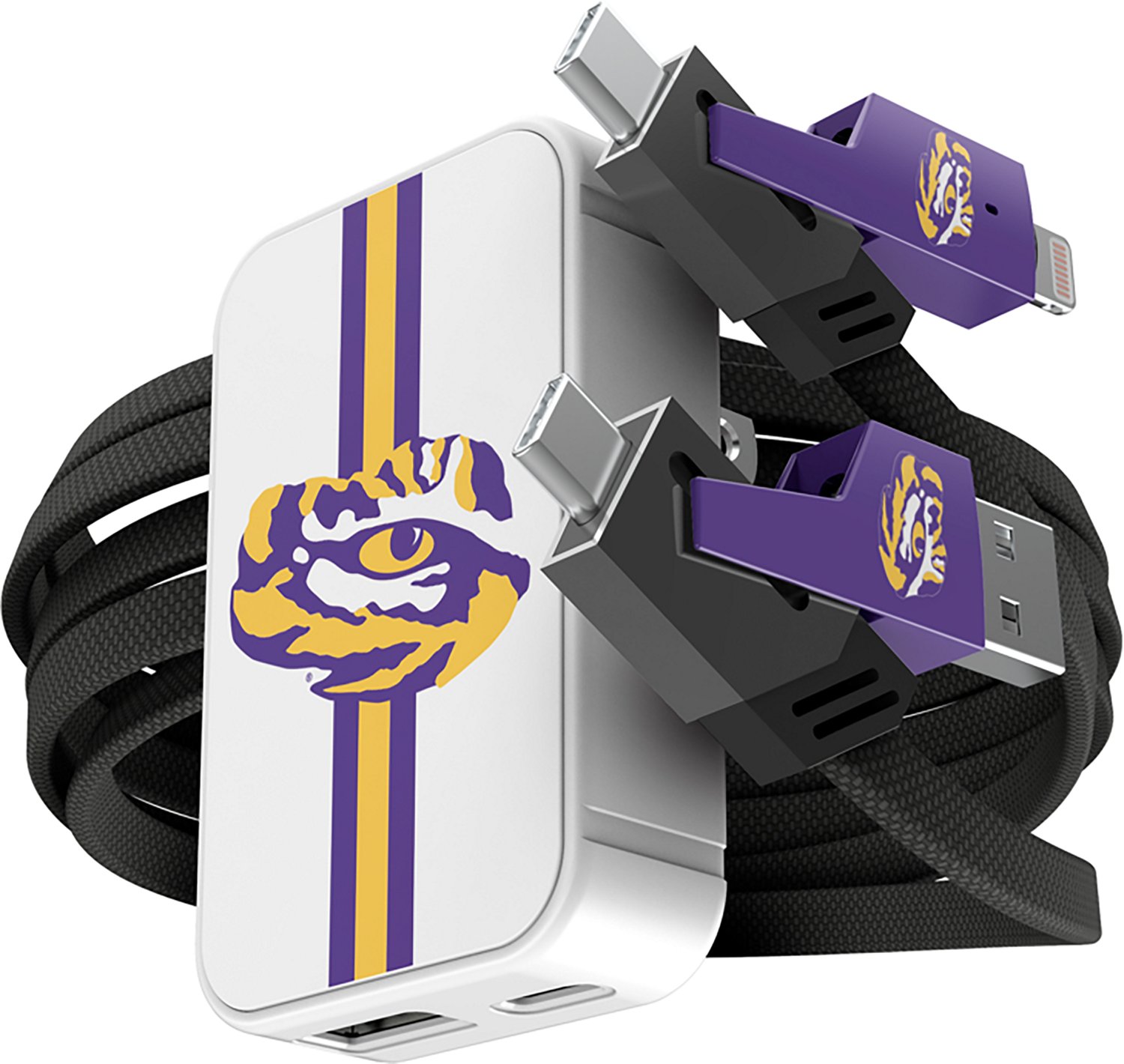 Prime Brands Group Louisiana State University Slim Wall Charger with 4-in-1 Multicharging Cable