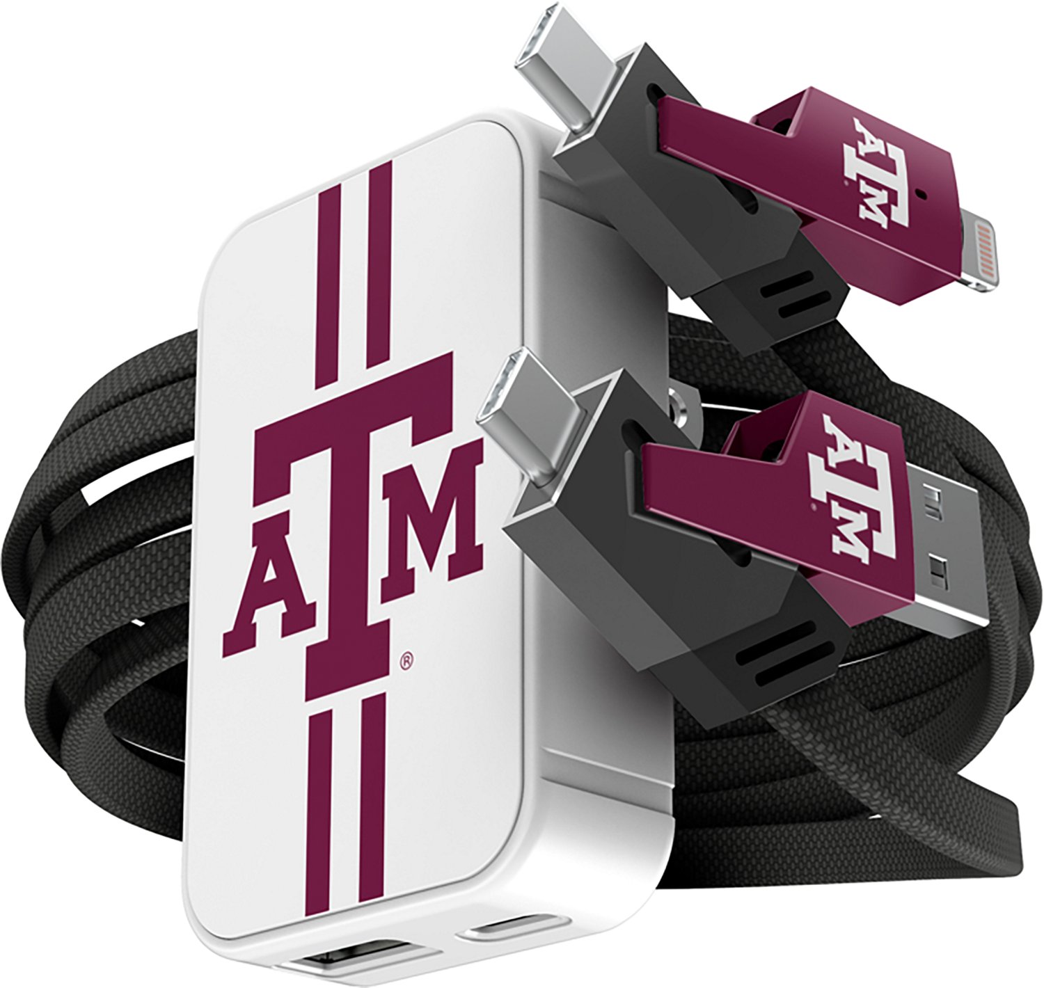 Prime Brands Group Texas A&M University Slim Wall Charger with 4-in-1 Multicharging Cable