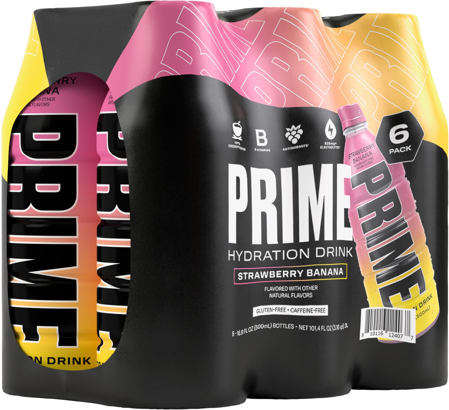 Rehydrate with a rush of Prime Hydration Strawberry Energy Drink 6-Pack. The formula contains 10% coconut water and is jam-packed with BCAAs, B vitamins, antioxidants and electrolytes for efficient hydration. Strawberry flavor makes drinking a breeze. 20 calories. Caffeine free. Zero added sugar.
