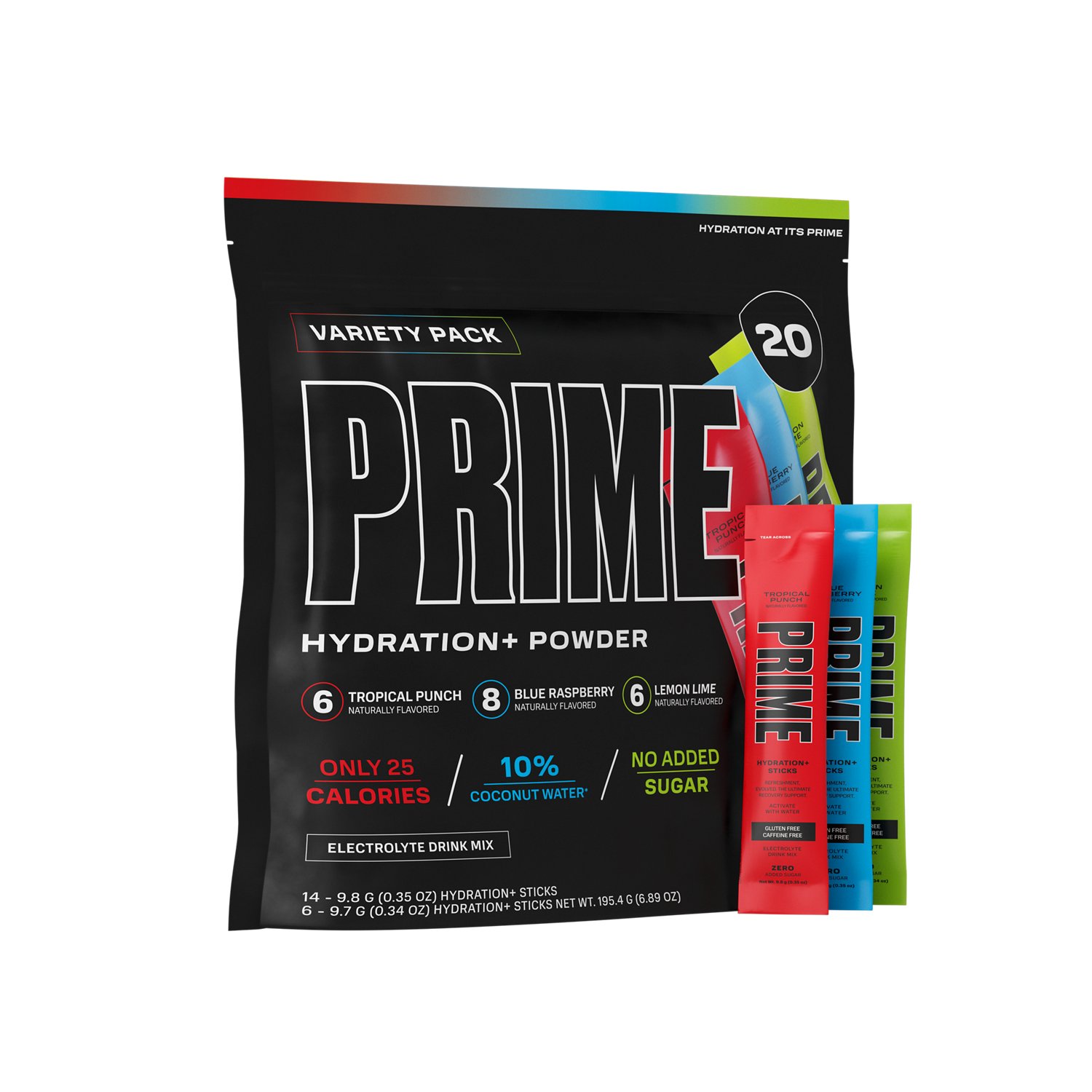 Stay hydrated and elevate your workout recovery with the Prime Variety Hydration Sticks 20-Pack. The water-soluble, powdered formula is made with 10% coconut water, 250 milligrams of BCAAs, 871 milligrams of electrolytes, B vitamins and antioxidants, and it is gluten and caffeine free with zero added sugar.