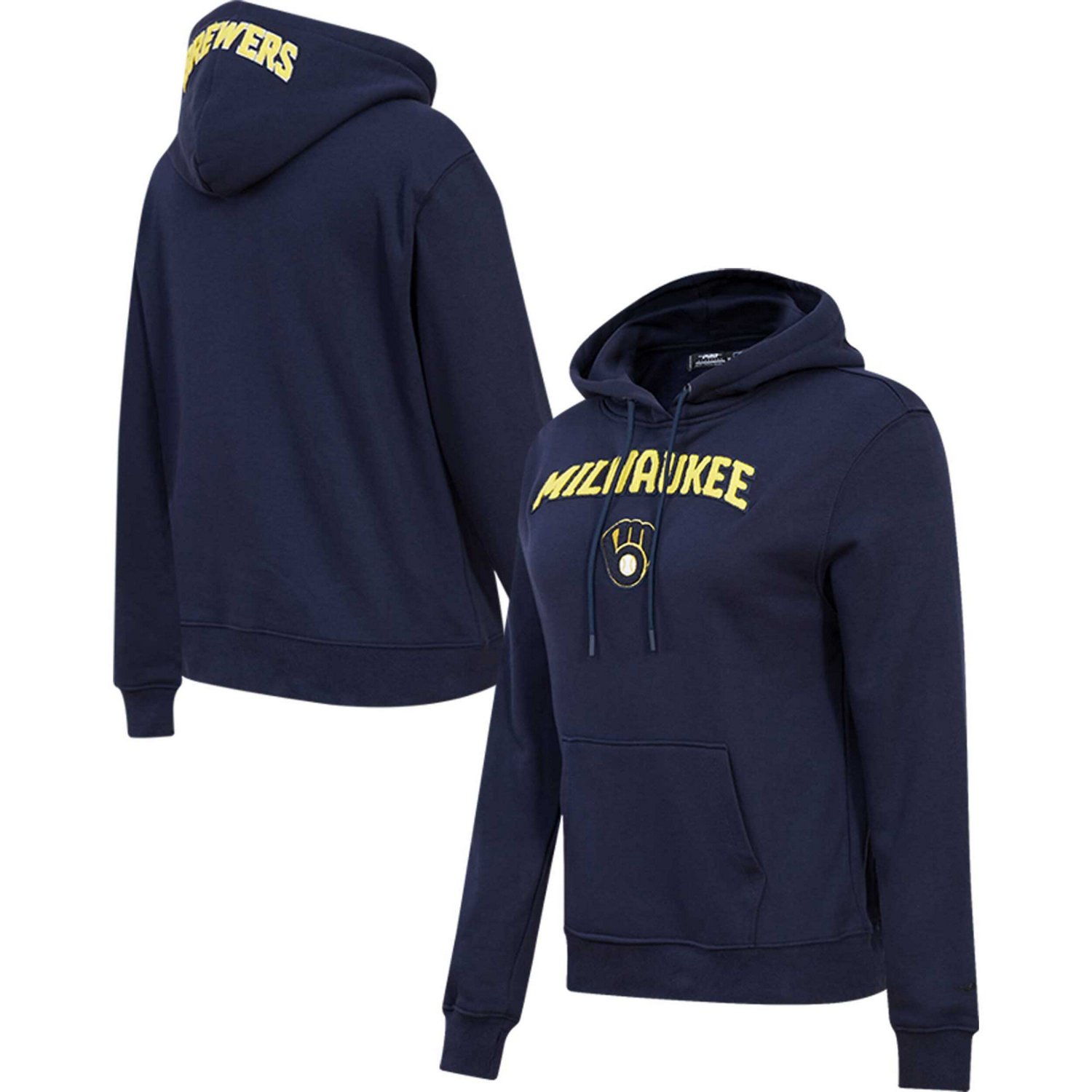 The Women's Pro Standard Navy Milwaukee Brewers Classic Fleece Pullover Hoodie is the perfect way to show your support for the Milwaukee Brewers Made from soft cotton this midweight hoodie features embroidered chenille applique and graphics that proudly display your team spirit The fleece lining provides warmth and comfort while the front pouch pocket and hood with drawstring offer added functionality Whether you're cheering on the Brewers at the stadium or just relaxing at home this hoodie is sure to keep you comfortable and stylish
