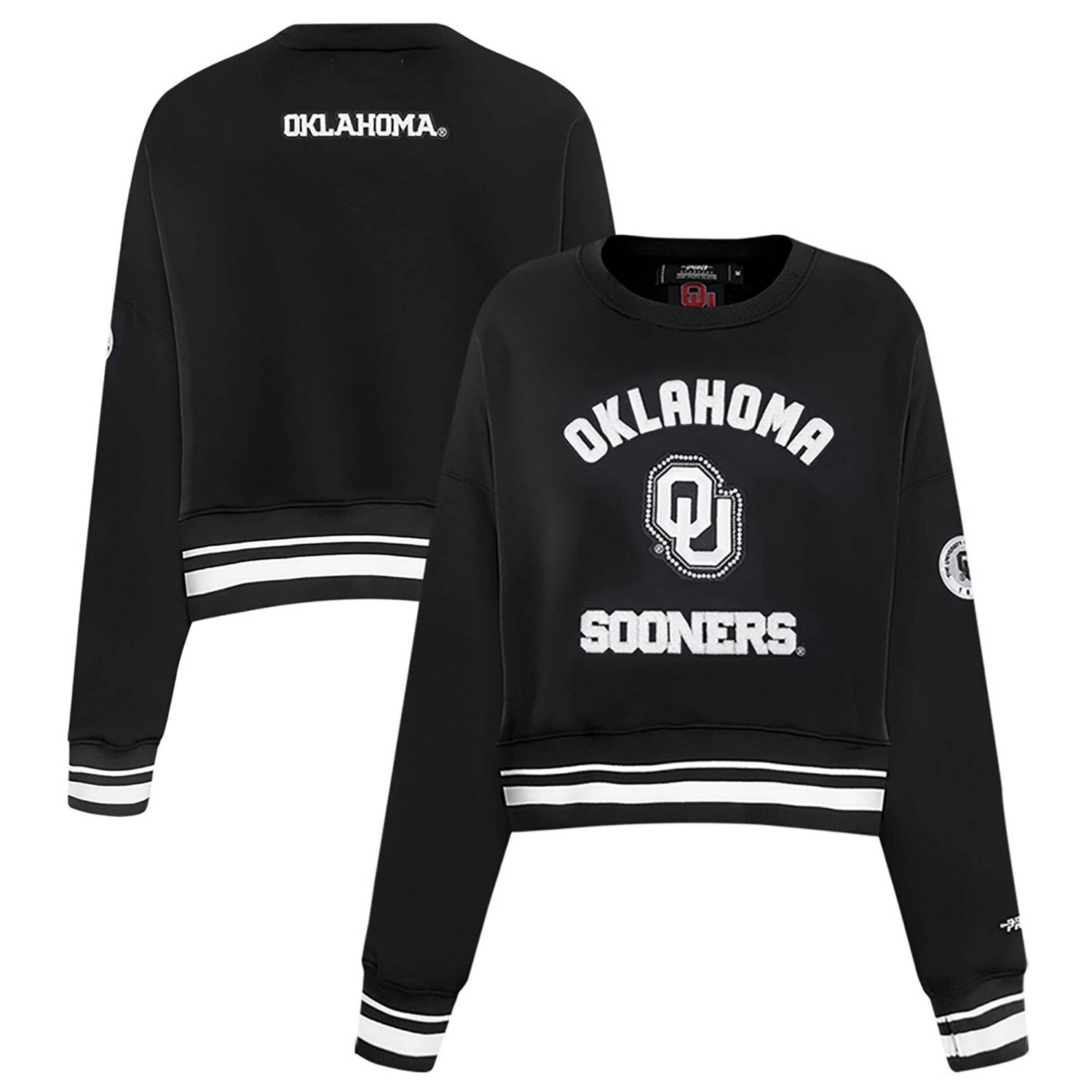 Show off your Oklahoma Sooners pride in this Pearl Cropped Pullover Sweatshirt from Pro Standard Chenille patches and a pearl-detailed logo add a touch of elegance making it a standout piece for fans Fleece lining delivers extra warmth while the dropped shoulders and cropped hem create a trendy look that elevates your Oklahoma Sooners style