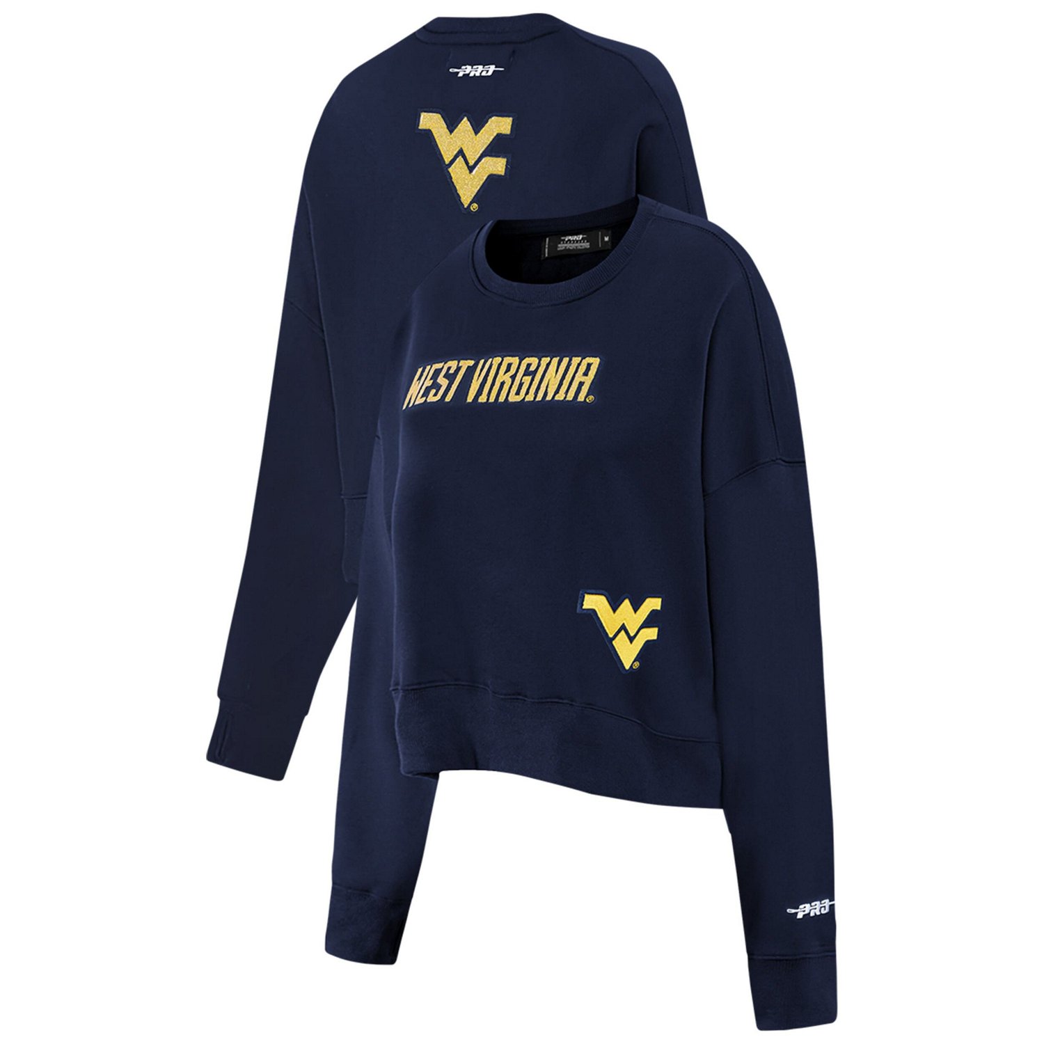 Bring sparkling team spirit to West Virginia Mountaineers game day with this Sequin Boxy Cropped Pullover Sweatshirt by Pro Standard It features sequin patches across the front and on the back to make your fandom shimmer Dropped shoulders a boxy fit and cropped hem give this West Virginia Mountaineers sweatshirt a trendy look that's comfortable to wear all day