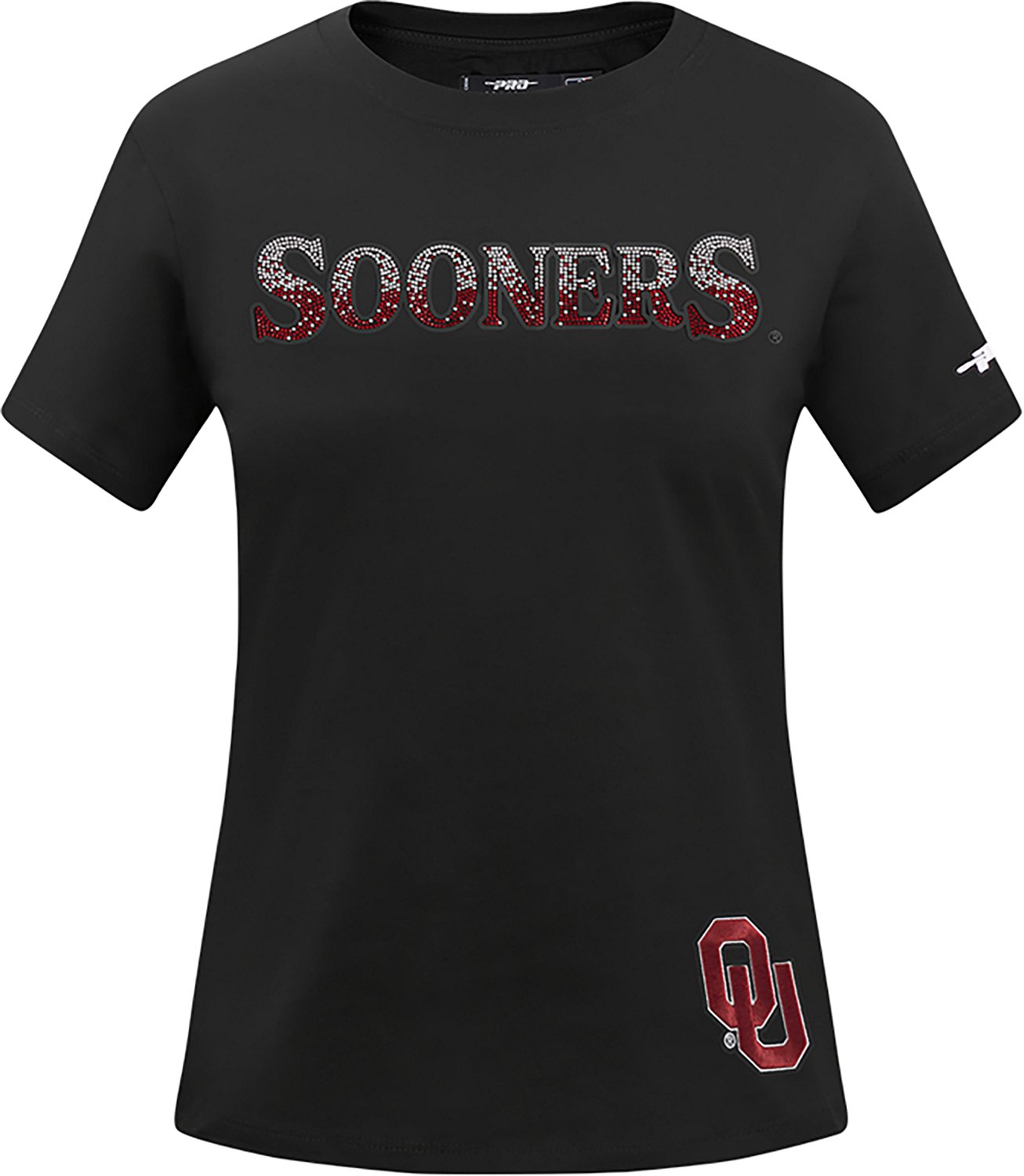 Show your Oklahoma fandom sporting this Pro Standard Women's Oklahoma Sooners Jewels T-shirt, featuring a stylish Sooners logo with jeweled highlights on the chest. Its soft, stretchy blend of cotton and Spandex wears comfortably to gamedays and tailgate parties.