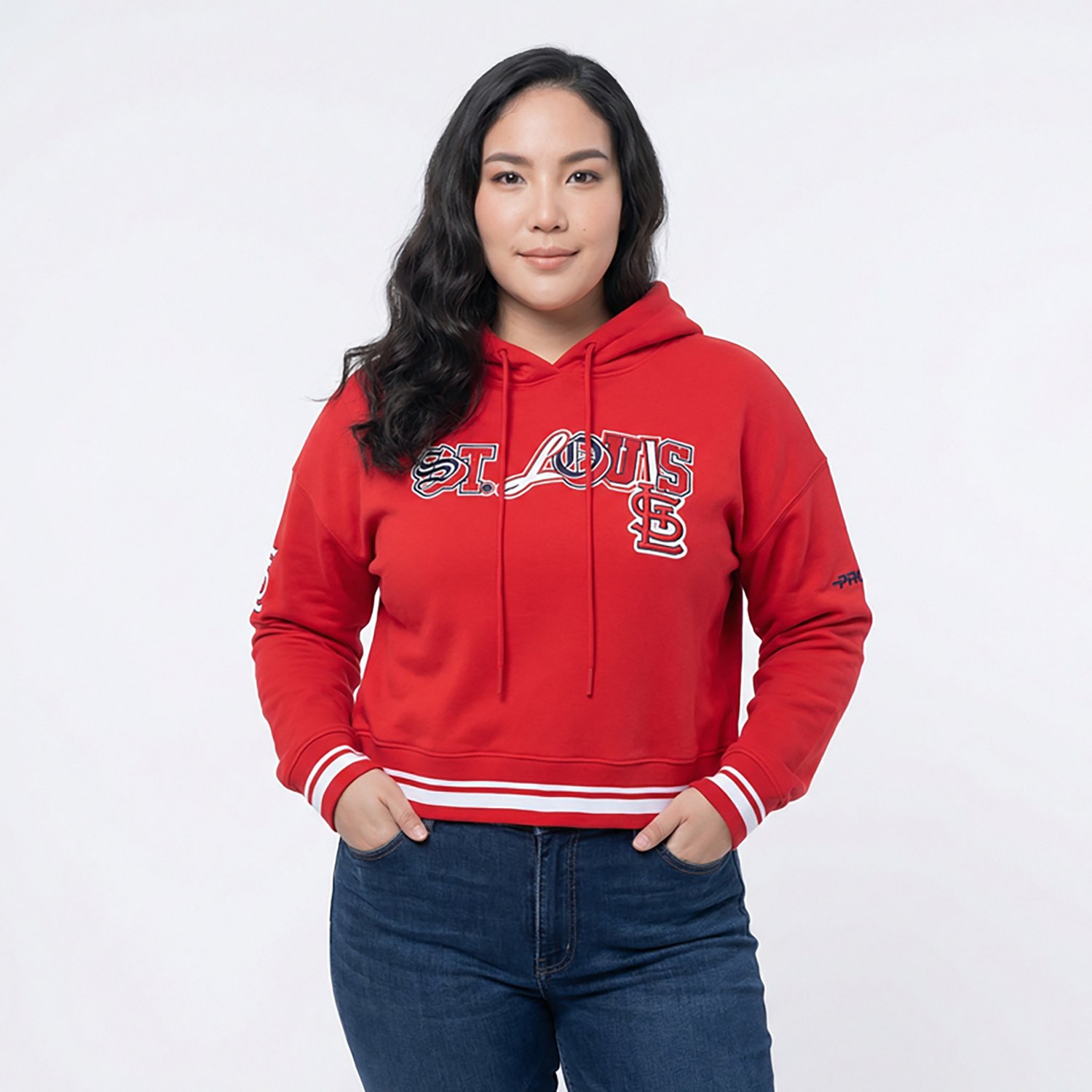 Pro Standard Women's St. Louis Cardinals City Ransom Rib Fleece Cropped Long Sleeve Hoodie