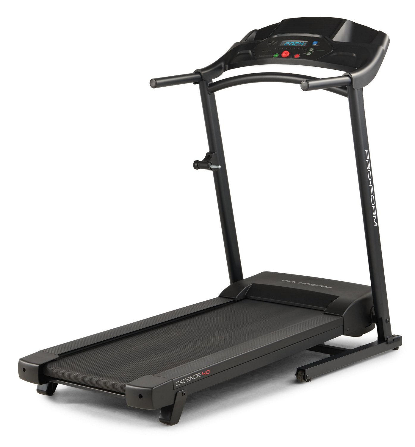 Start your fitness journey on the ProForm Cadence 4.0 Treadmill. The backlit LCD screen makes it easy to track your progress, while the steel frame affords durability. Bluetooth technology allows you to connect your phone or tablet to play some of your favorite music or audiobooks from the built-in speakers, helping you get in the zone.