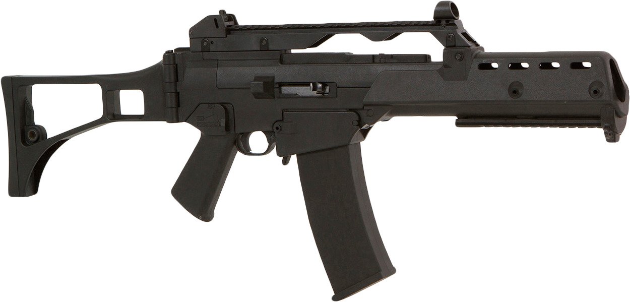 Full-length, aluminum-reinforced Picatinny top rail with windage and elevation adjustable sights