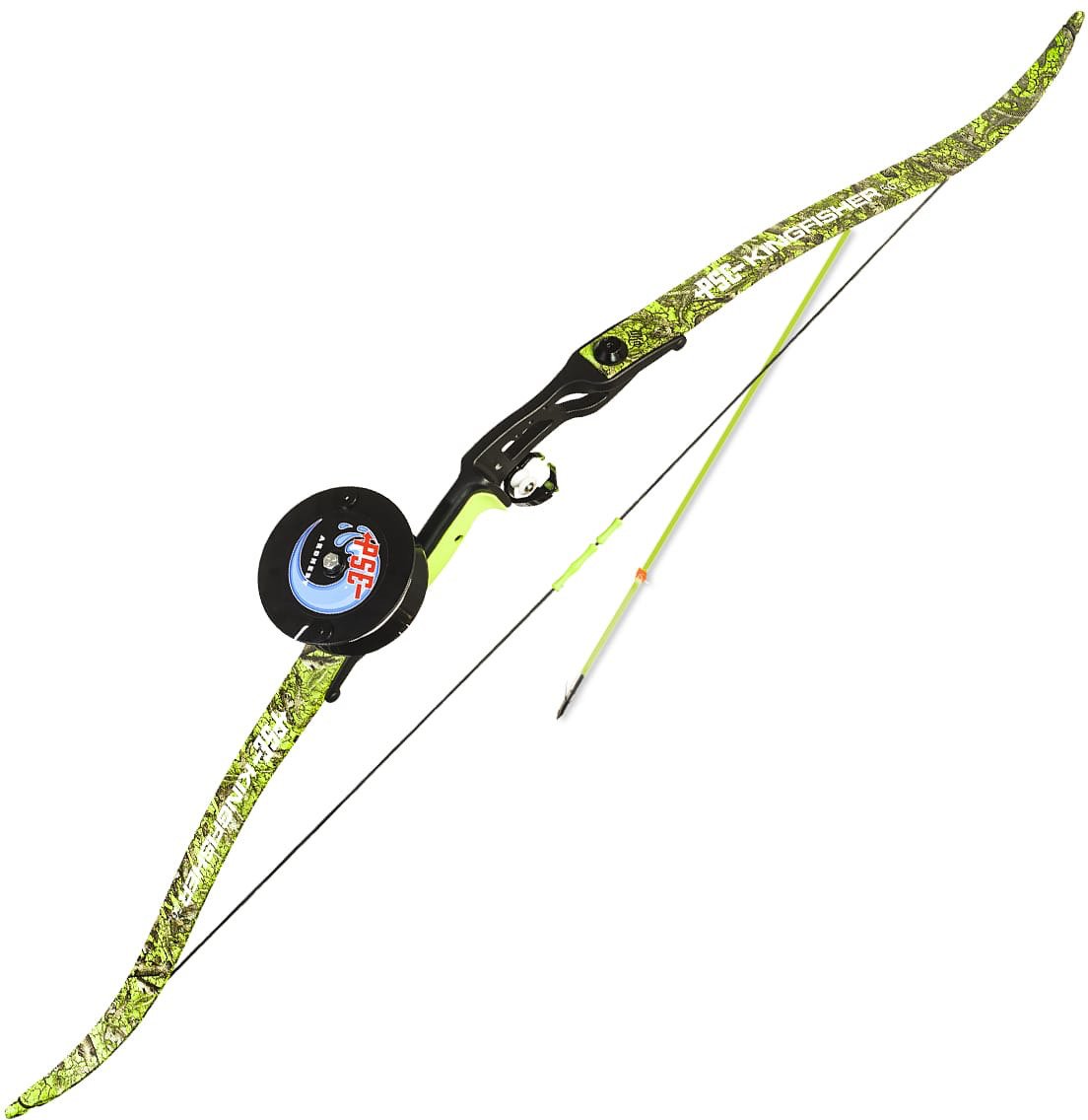 Gear up for fishing season with the PSE KingFisher 56 Recurve Bow Kit, which includes finger savers for safety. The limbs are covered in a DK'D camo pattern to help keep you hidden in the wilderness. Includes a 32-inch bowfishing arrow.