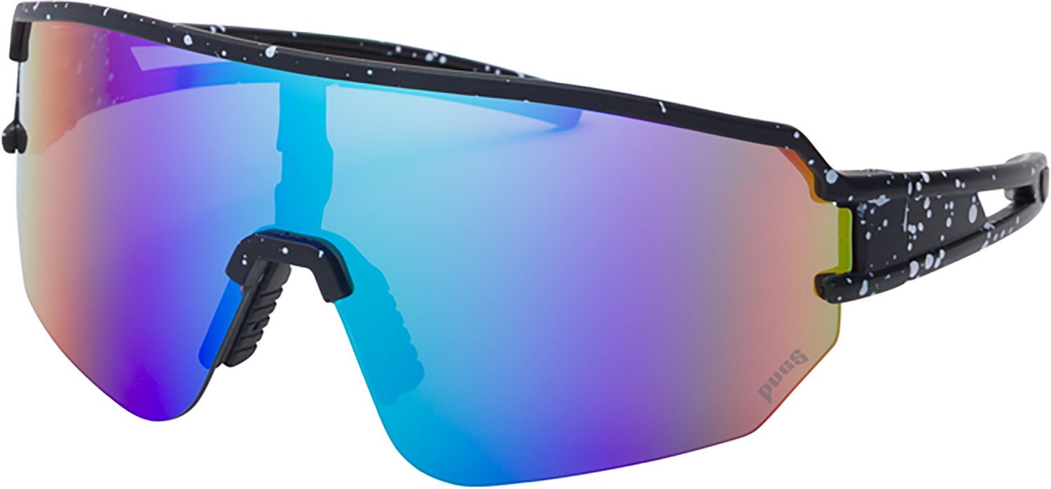 Slip on the PUGS Adults' Elite Shield Wrap Sunglasses and take on a sunny day. The co-injected rubber temple tips make sure the sunglasses stay in place as you move around, and the polycarbonate lens is shatter resistant to make sure they remain in tact if accidentally dropped. A splatter print highlights an eye-catching appearance.