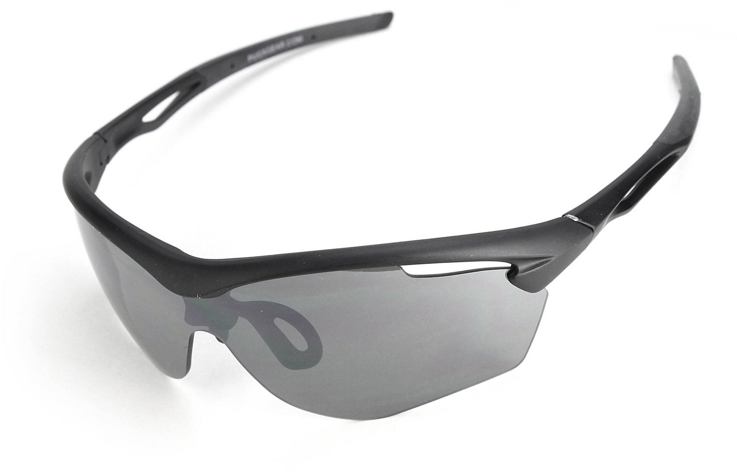 Enjoy a day outdoors wearing the PUGS Adults' Semi Rimless Vented Wrap-Around Sunglasses. These sunglasses feature a polycarbonate and rubber wrap-around frame and semi-rimless lenses that are shatter-resistant for long-lasting durability. The rubber temples and nose pads help keep the sunglasses comfortably anchored.