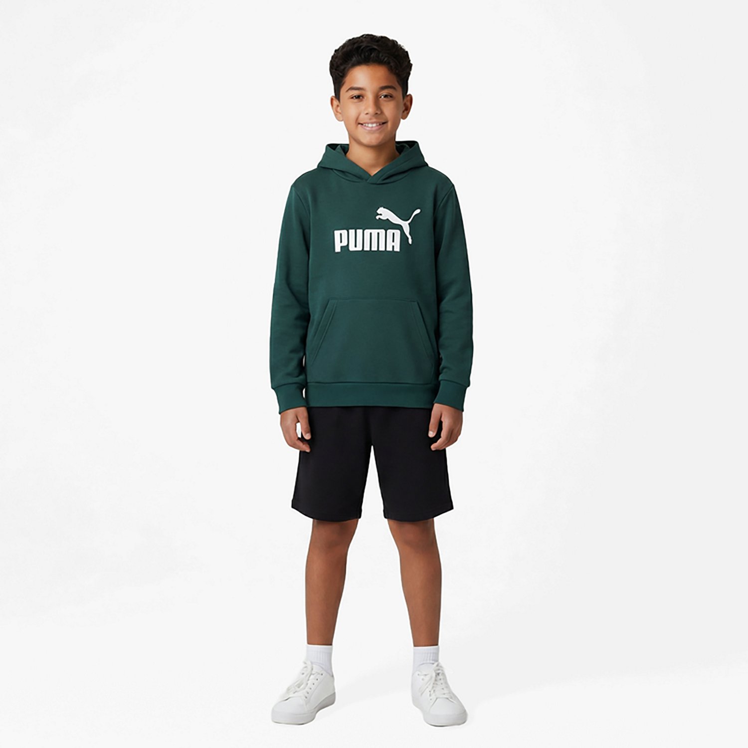 Look and feel your best in the PUMA Boys’ Foundations No 1 Logo Fleece PO Hoodie. It’s crafted from a blend of cotton and polyester for comfort and warmth, and the front kangaroo pocket keeps essentials close by.