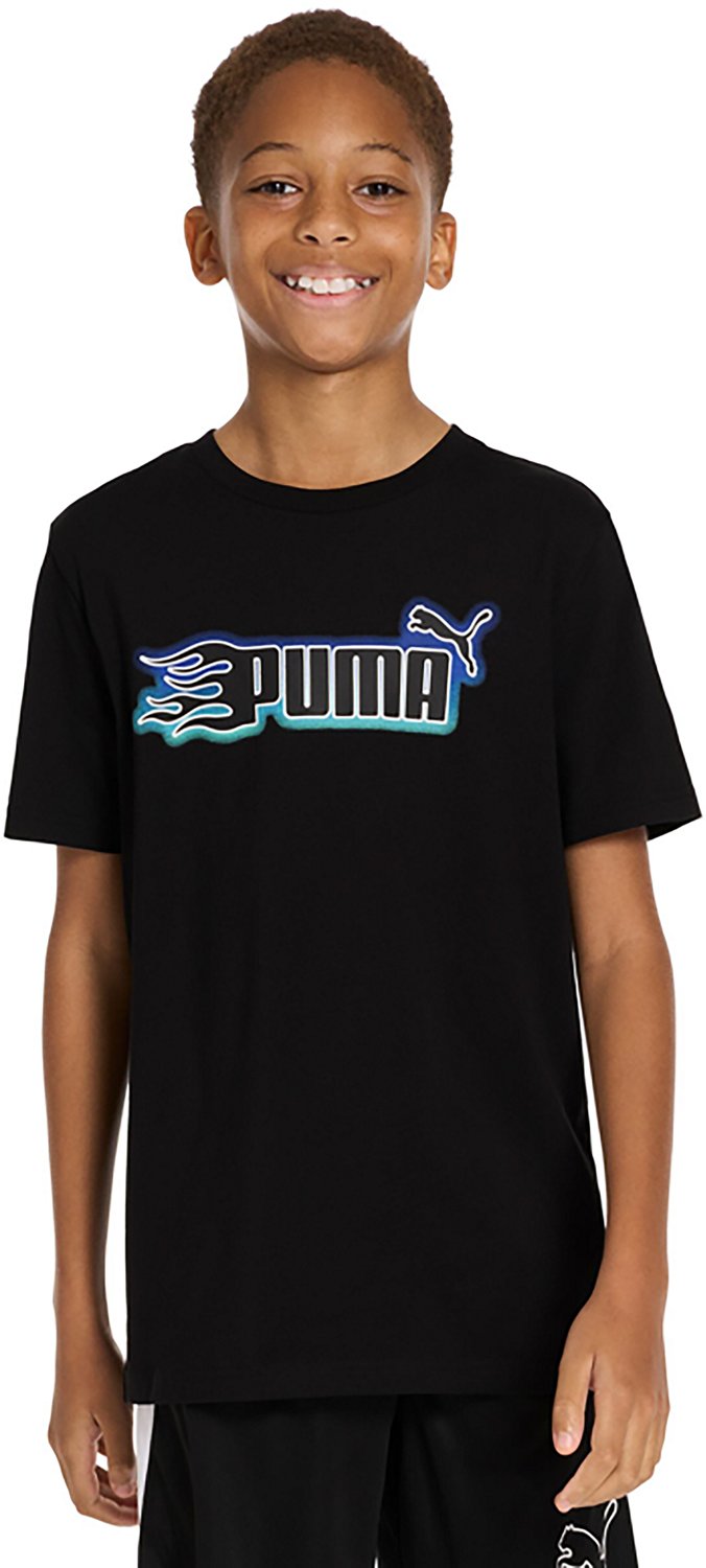 Add a fun touch to your outfit rotation with this PUMA Boys’ PS Airbrush GFX T-shirt. It’s crafted from 100% cotton for comfort that lasts all day, and the cat logo gives a stylish look.