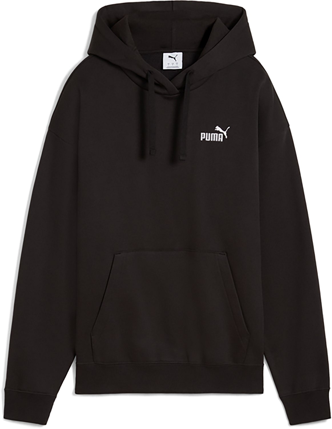 Look your best when you wear the PUMA Women's Essential Logo Fleece Hoodie. It is made of 40% cotton, 34% recycled polyester, and 26% recycled cotton. The hood is equipped with drawcords for an adjustable fit, and its kangaroo pocket allows you to carry small items. The small rubber PUMA logo is printed on the left-side chest, adding a sporty touch.